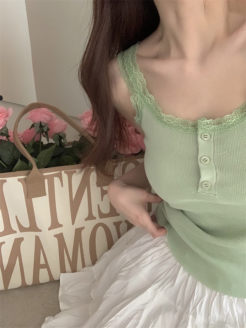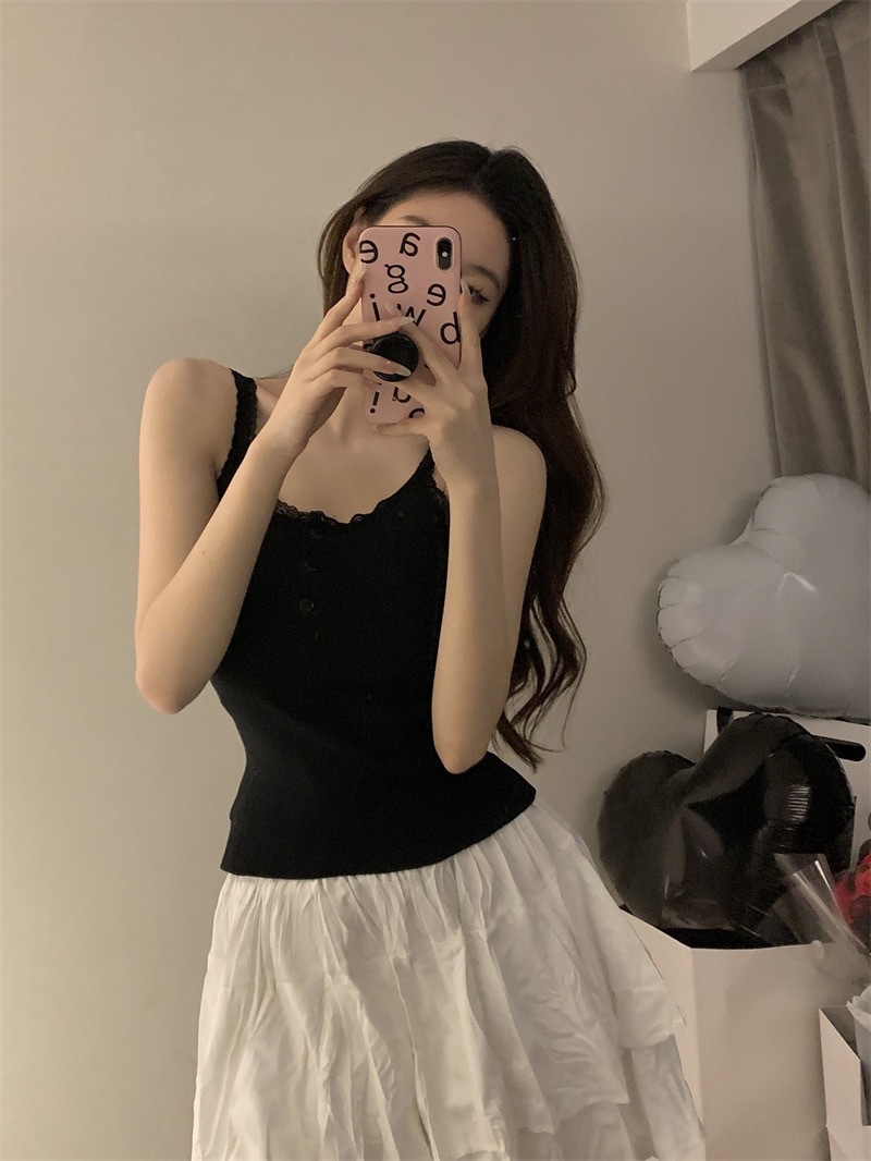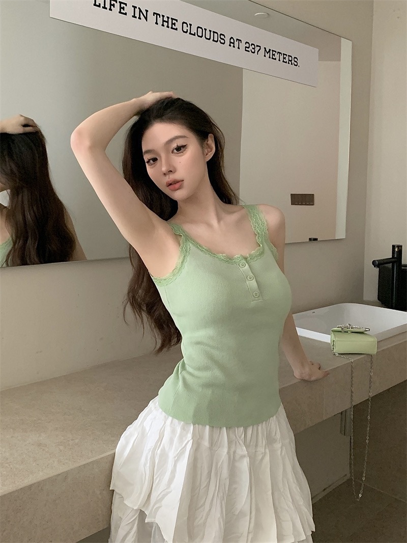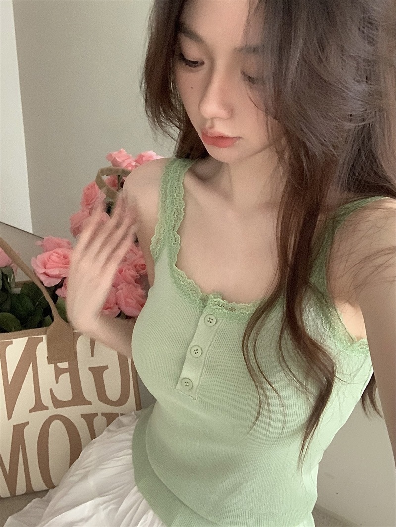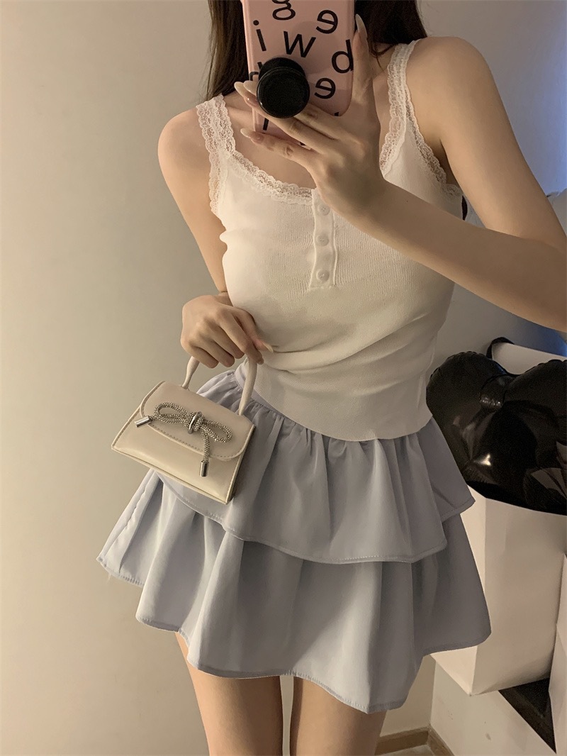 夏のギャルは純色のしわのストラップを合わせて胸のクッションを持っています。