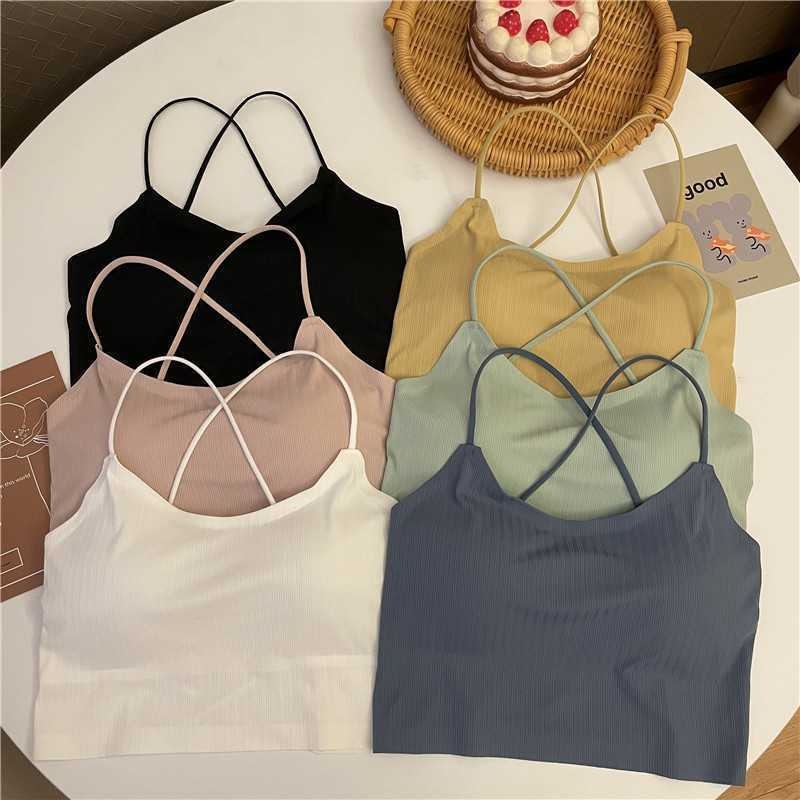 純綿の女性用インナーベスト、胸パッド付き、固定カップ、小胸を寄せ上げ、外でも着用可能、露出防止、キャミソール風