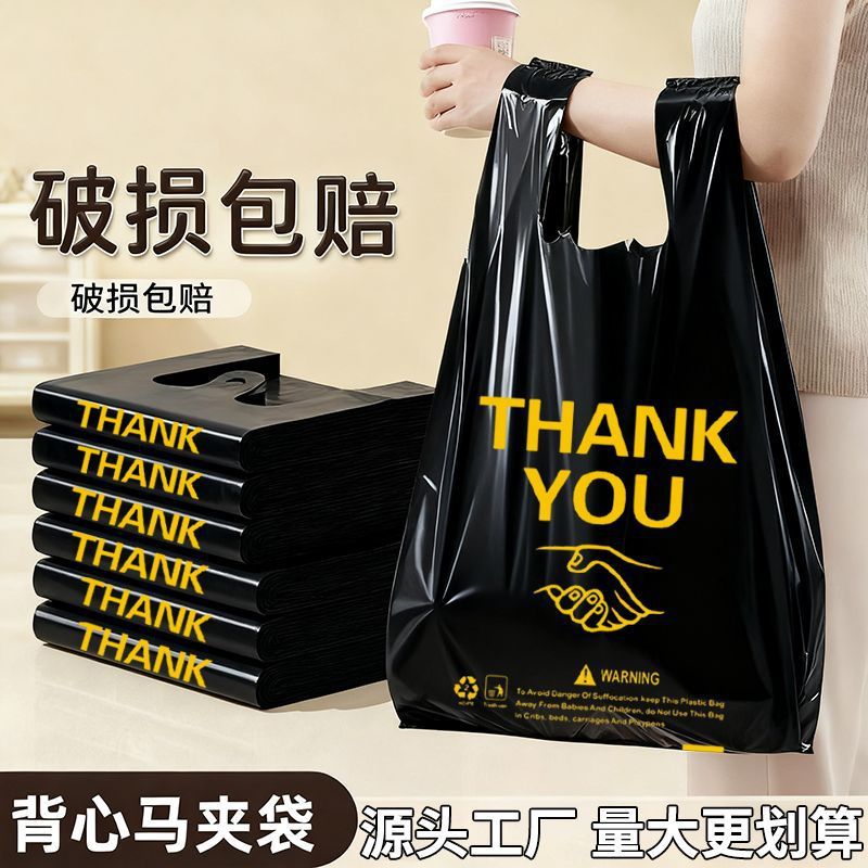 黑金感谢塑料袋一次性加厚打包袋方便袋超市手提购物袋背心袋批发