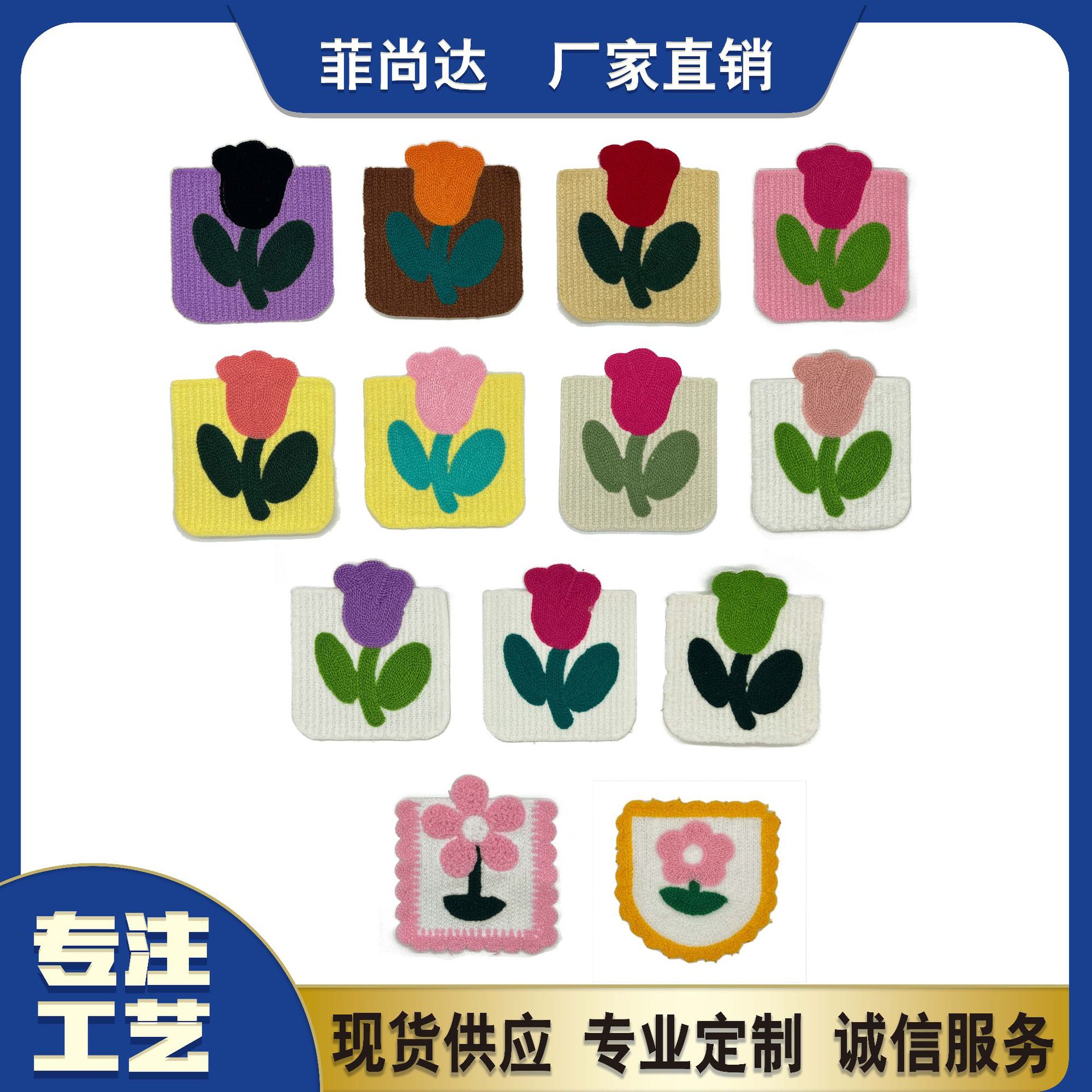 菲尚達かわいいDIY烙辺タオル刺繍ポケット花chenile patch手編み花パソコン布貼り