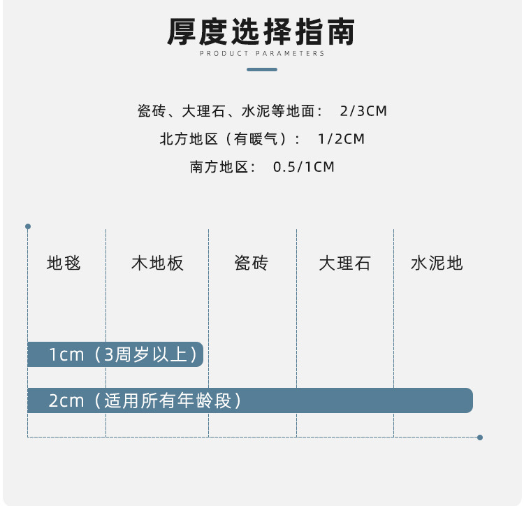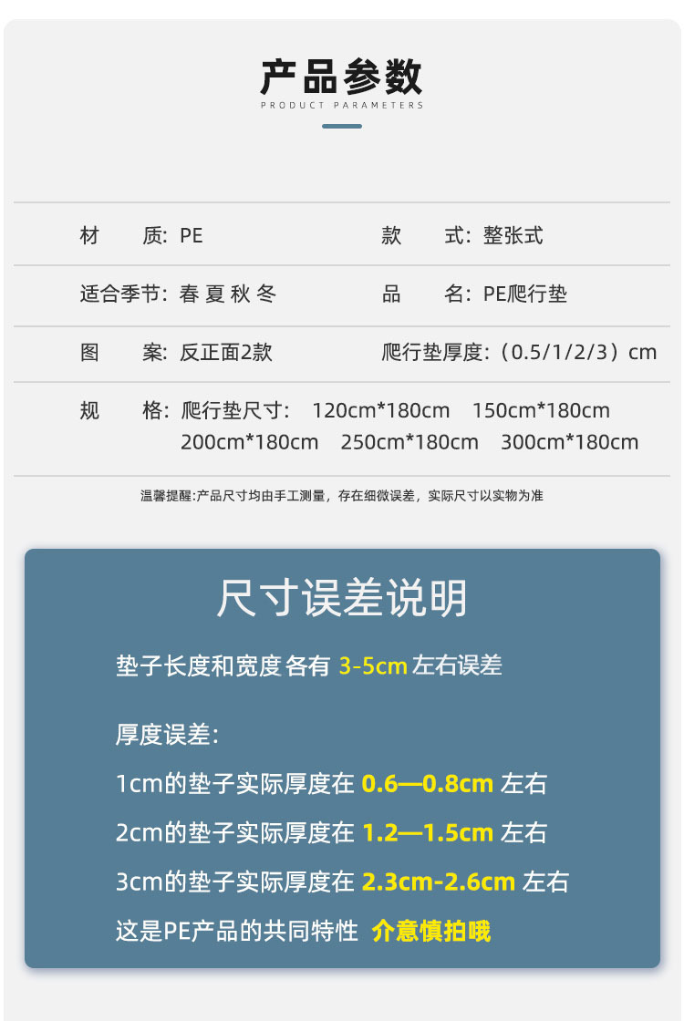 0.5-1.5cmシングル両面リビングベビー爬行マット子供ベビー爬行マット厚手アウトドア爬行マット