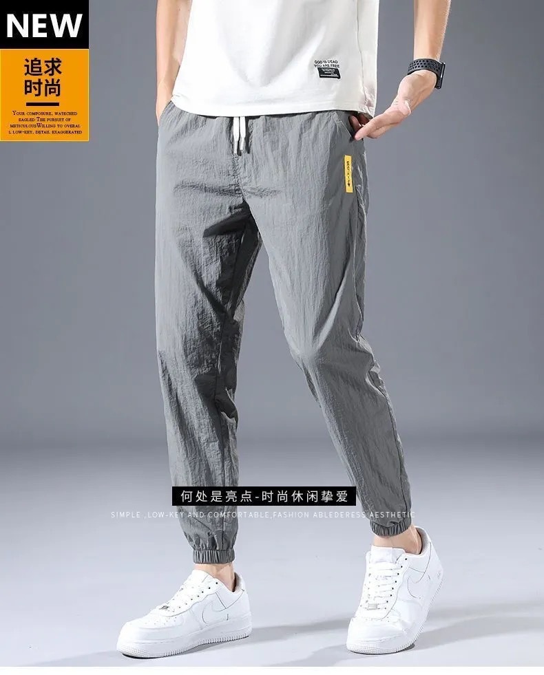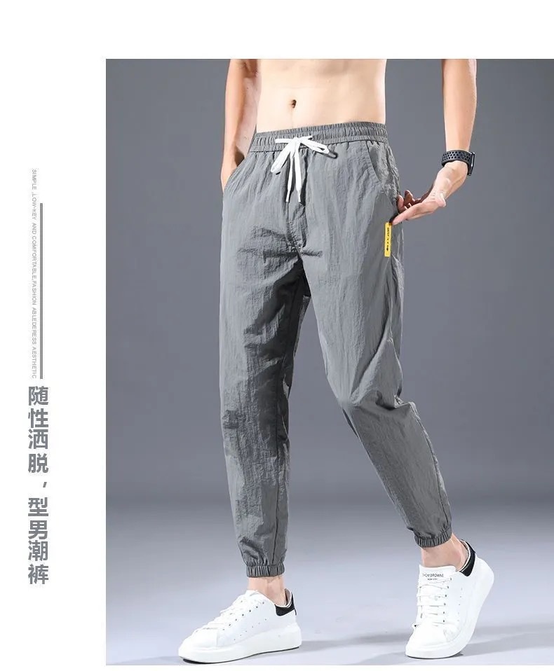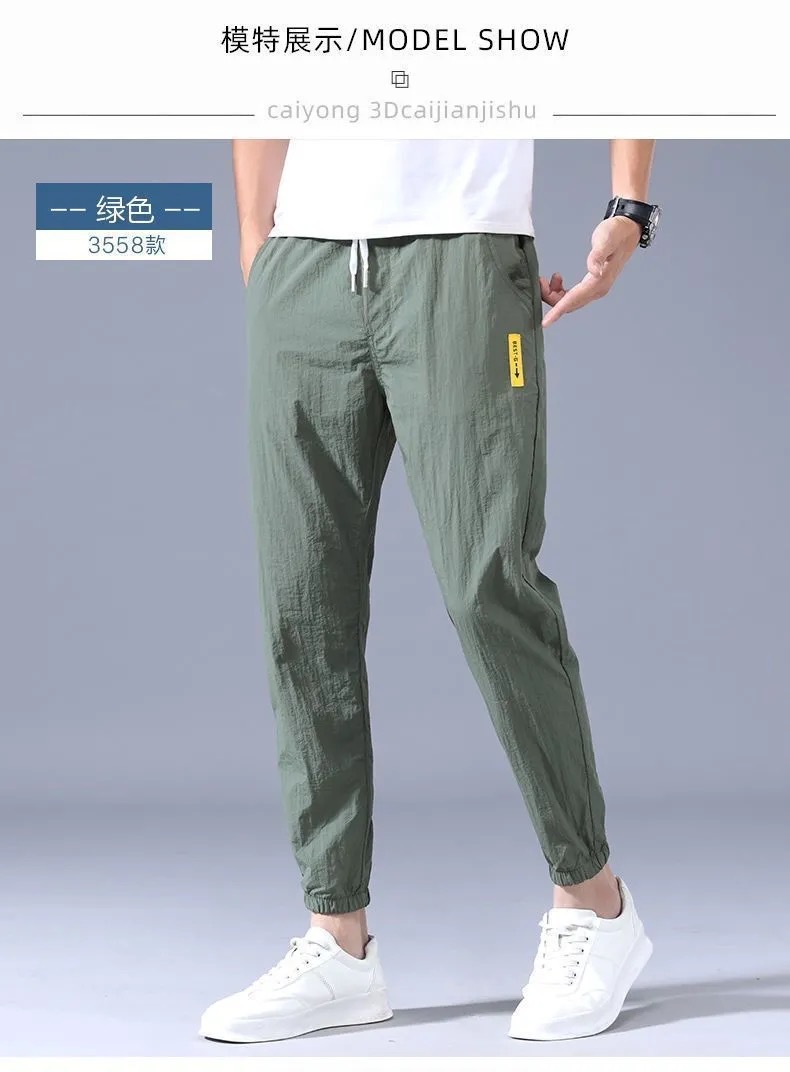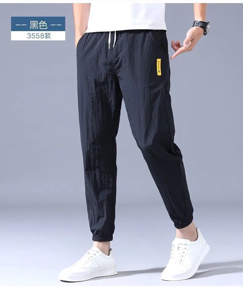 9分のズボンの男性のファッションの束の足のゆったりしているスポーツのズボンの氷の糸の夏の薄いタイプの男性の韓国版の速乾のカジュアルなズボンの9分