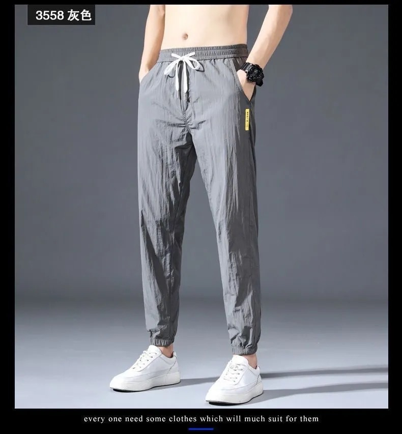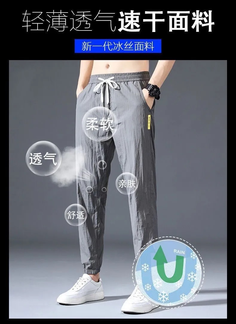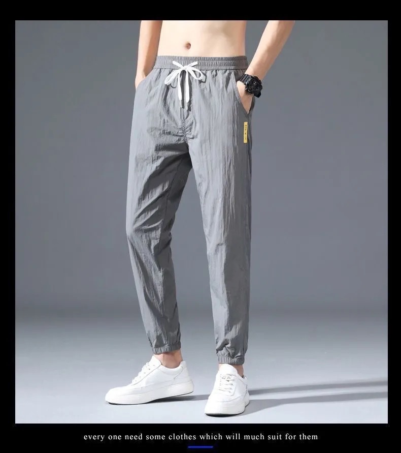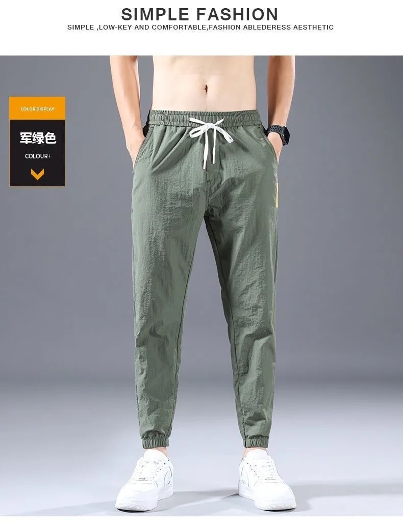 9分のズボンの男性のファッションの束の足のゆったりしているスポーツのズボンの氷の糸の夏の薄いタイプの男性の韓国版の速乾のカジュアルなズボンの9分