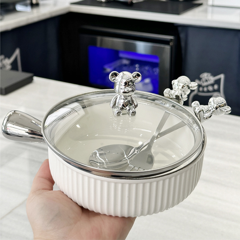 軽い贅沢な高颜値銀色の果物の碗の取っ手の碗のサラダの碗の家庭の食器の陶磁器の碗の泡の碗のスープの碗