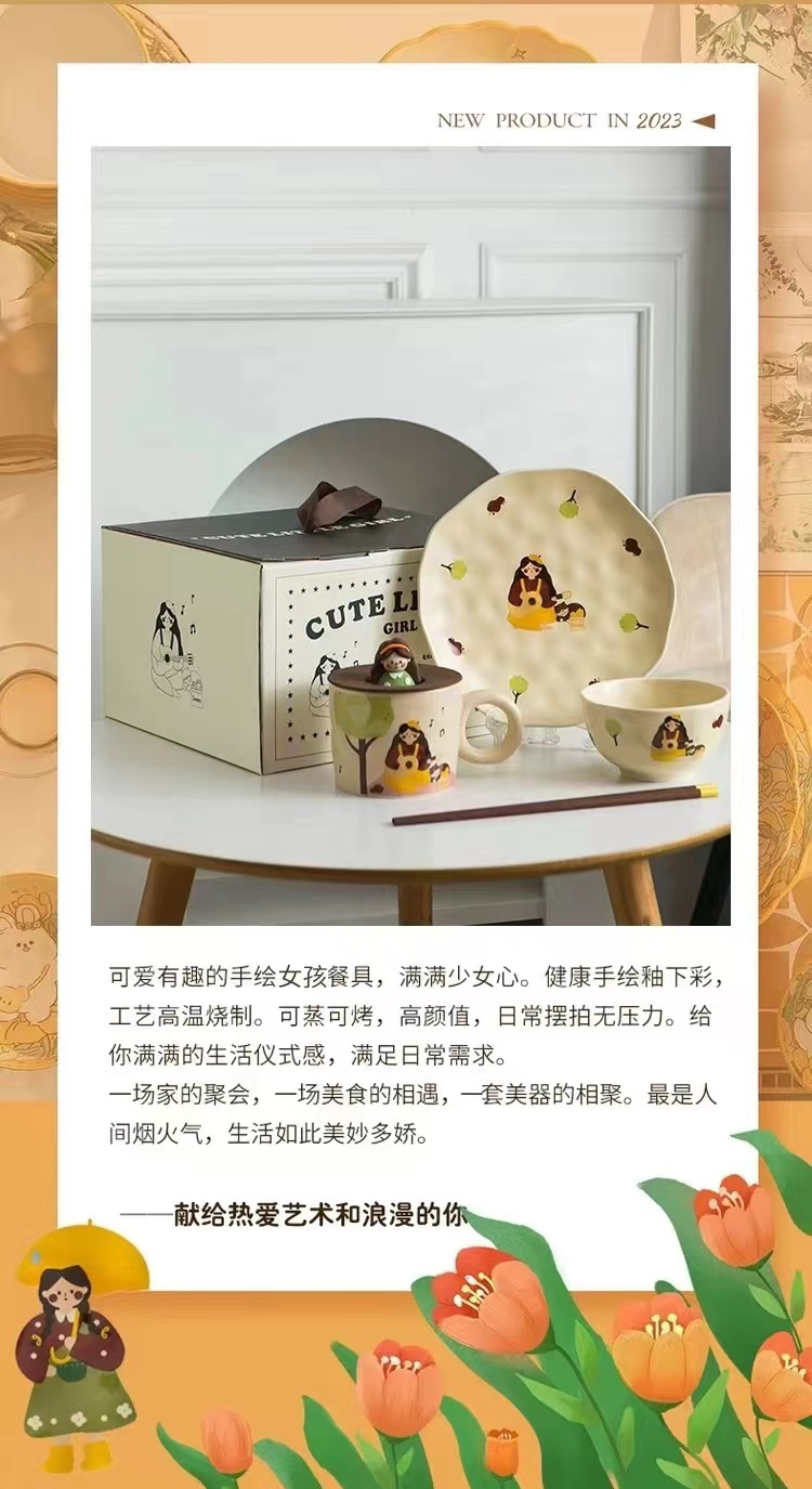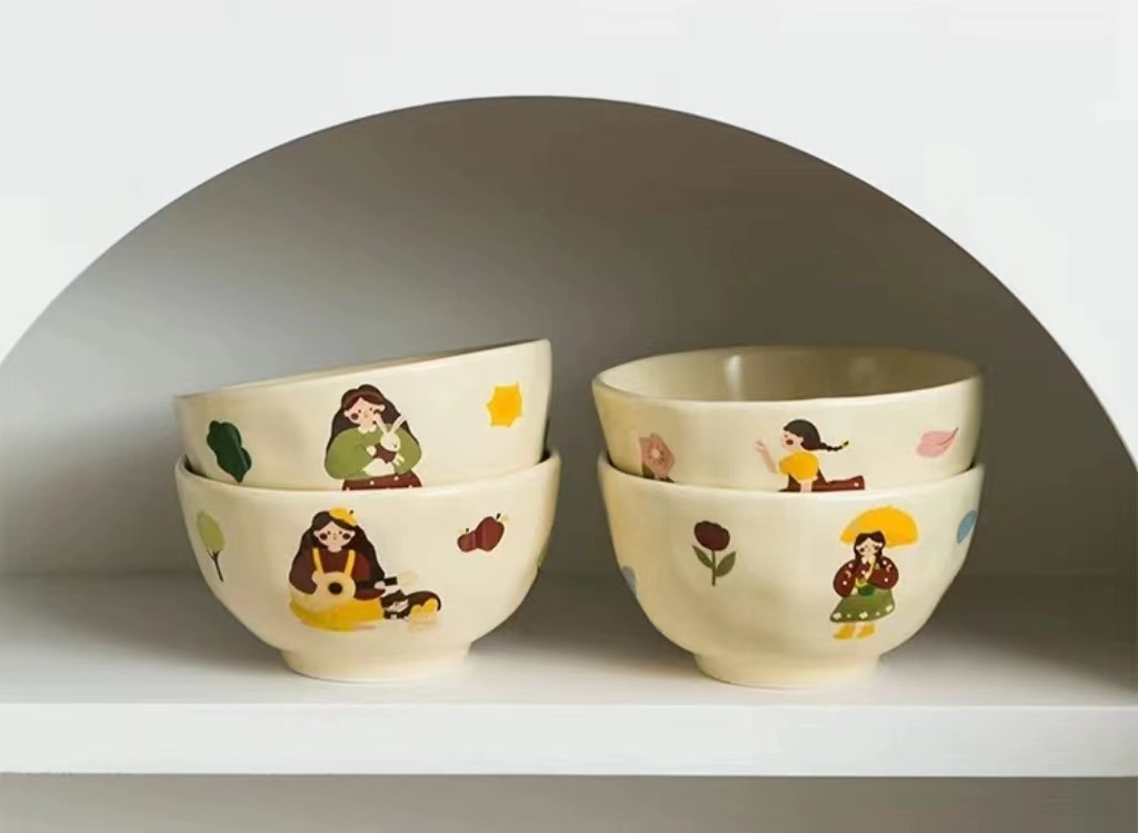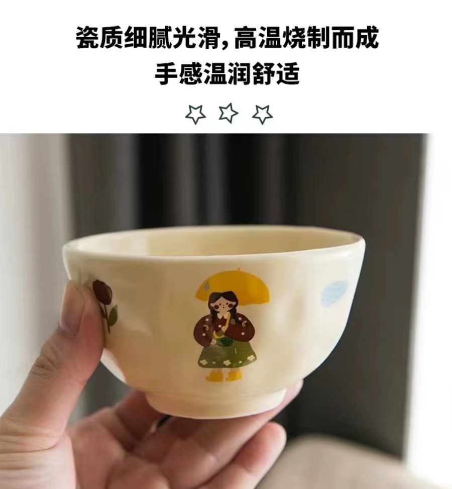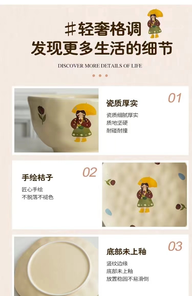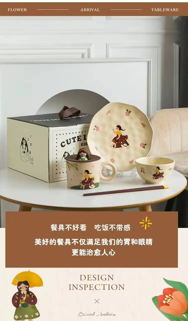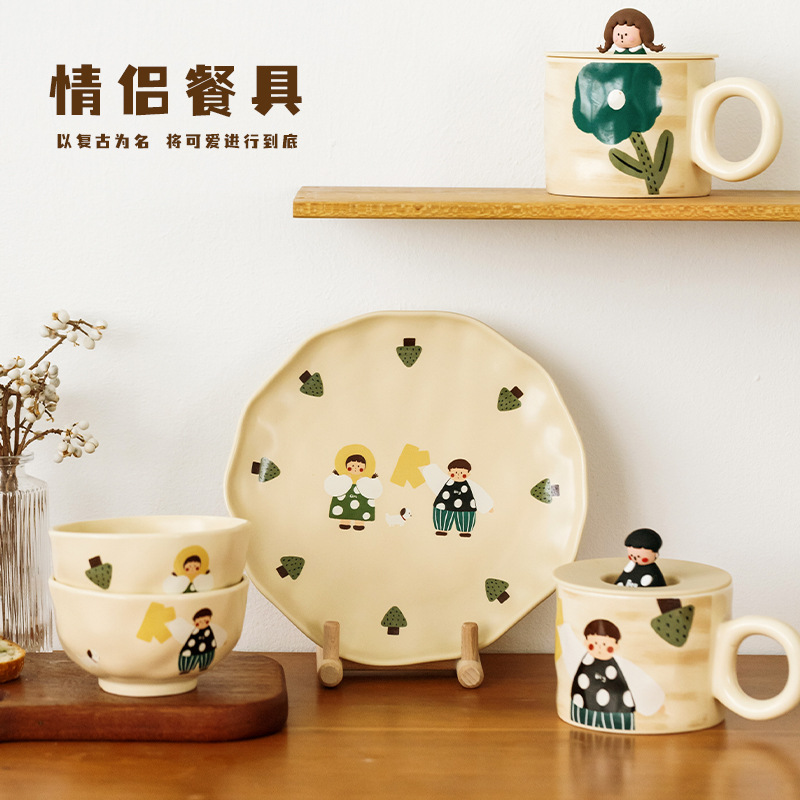 レトロ女の子カップル食器セット高颜値ご饭茶碗家庭用茶碗可爱い碗皿高颜値皿陶