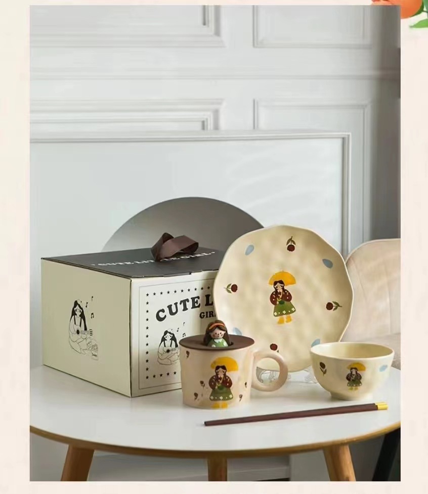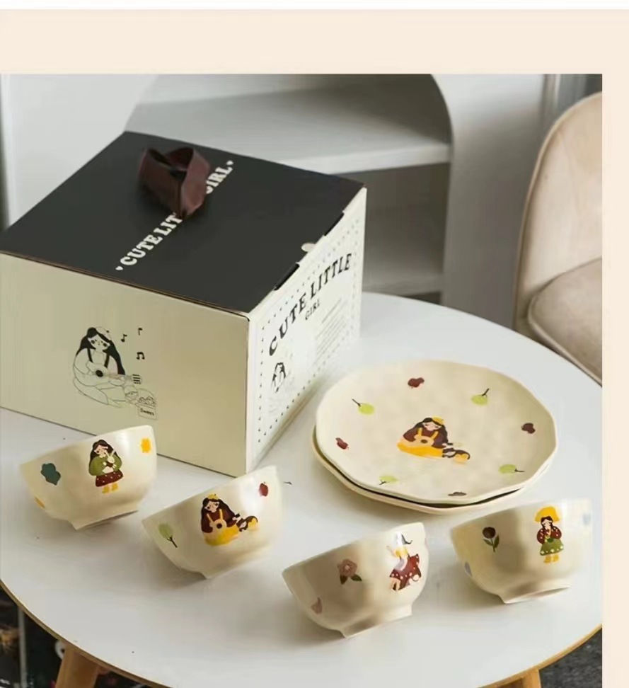 レトロ女の子食器セットセラミック皿かわいい高颜値茶碗家庭用一人二人食ギフトボックスセット