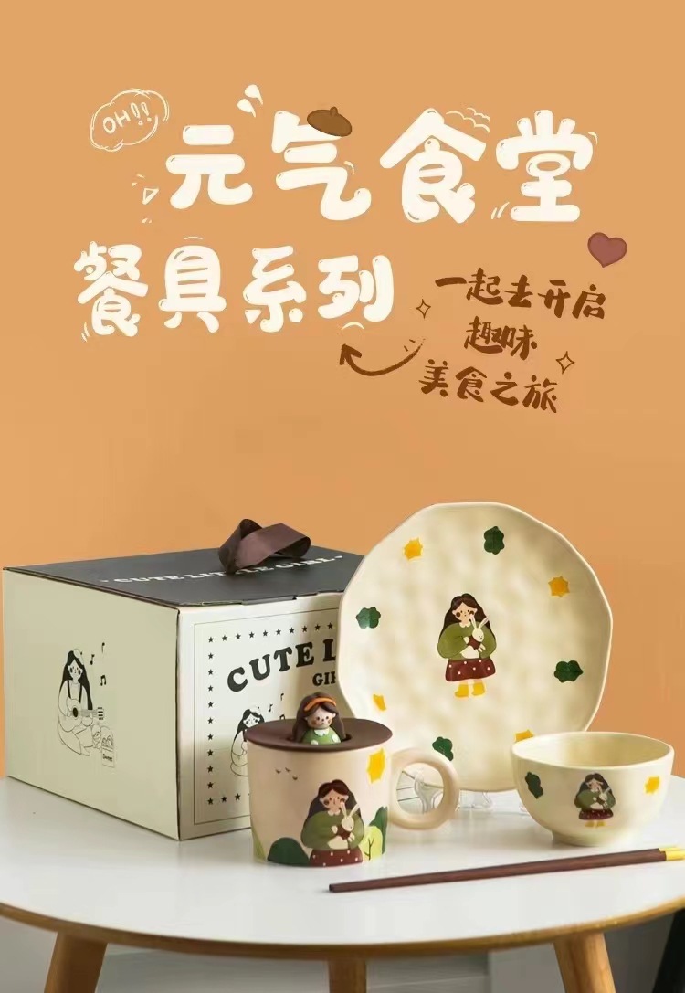 ニャン楽谷萌趣陶磁器食器と箸セット高颜値カップルカップと皿の誕生日プレゼント