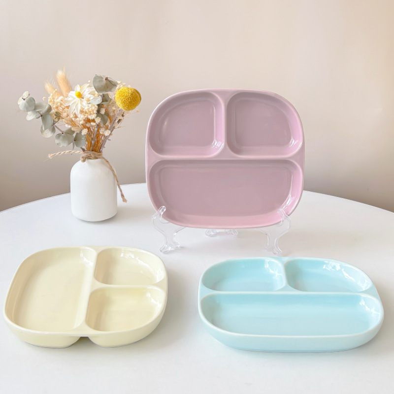 純色陶磁器分格食事皿211減脂食事皿子供定量朝食皿食器家庭用分格食事皿