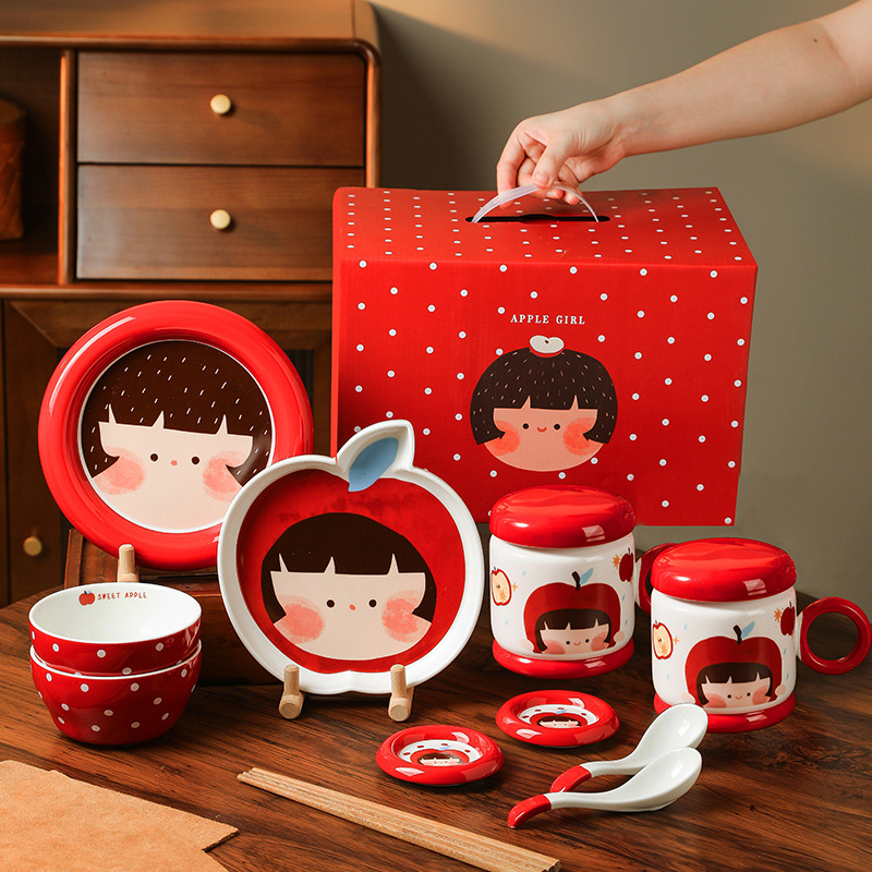 アップルガールセラミック食器皿セット高颜値カップルプレゼントかわいいカップお土産