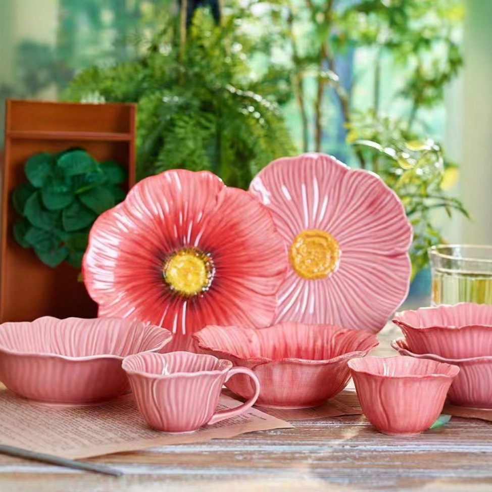 花びらセット陶磁器食器ins風家庭用料理皿ケーキ皿オフィス午後ティーカップ花ボウル
