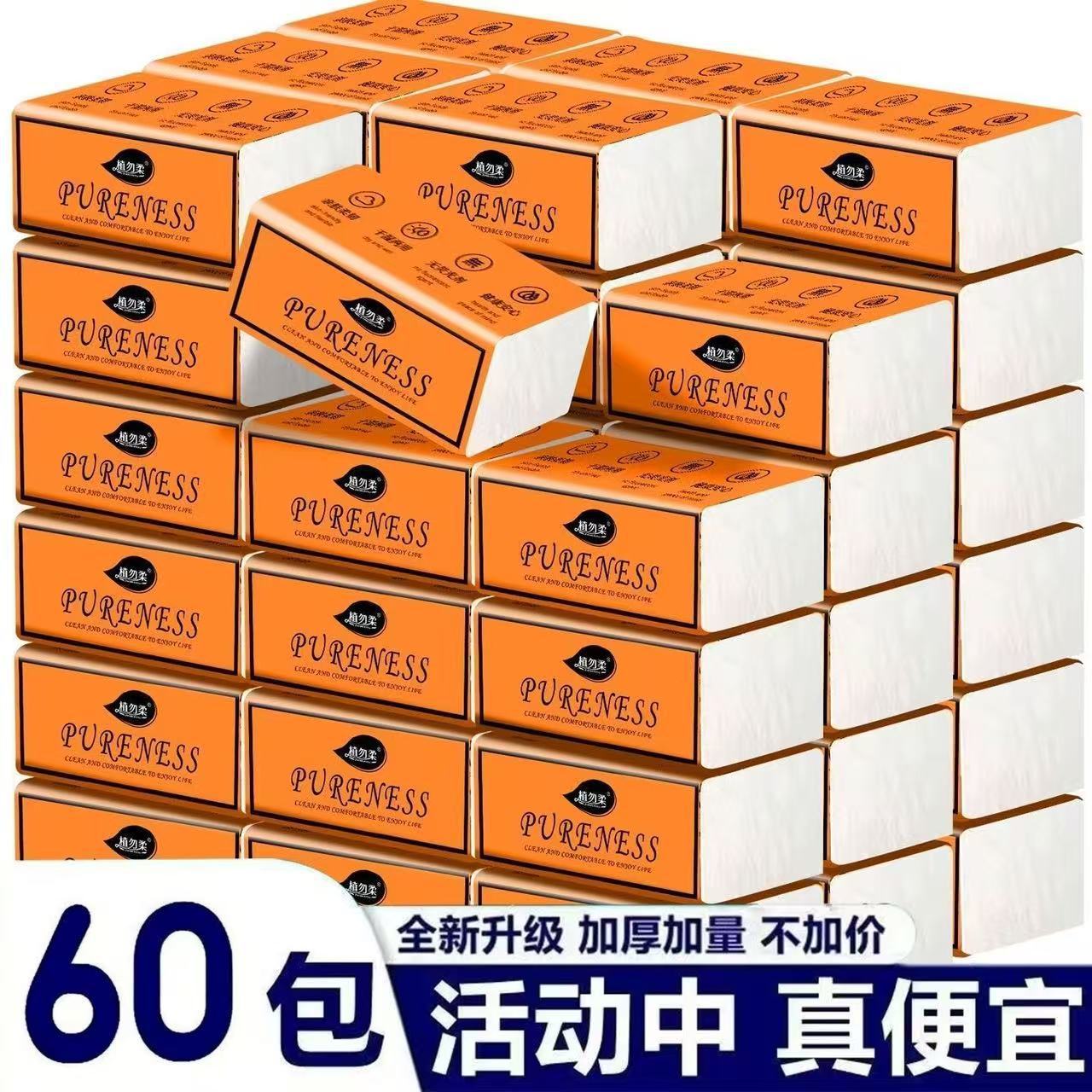 植勿柔整箱60包四层抽纸家用面巾纸卫生纸餐巾纸实惠装纸巾家庭