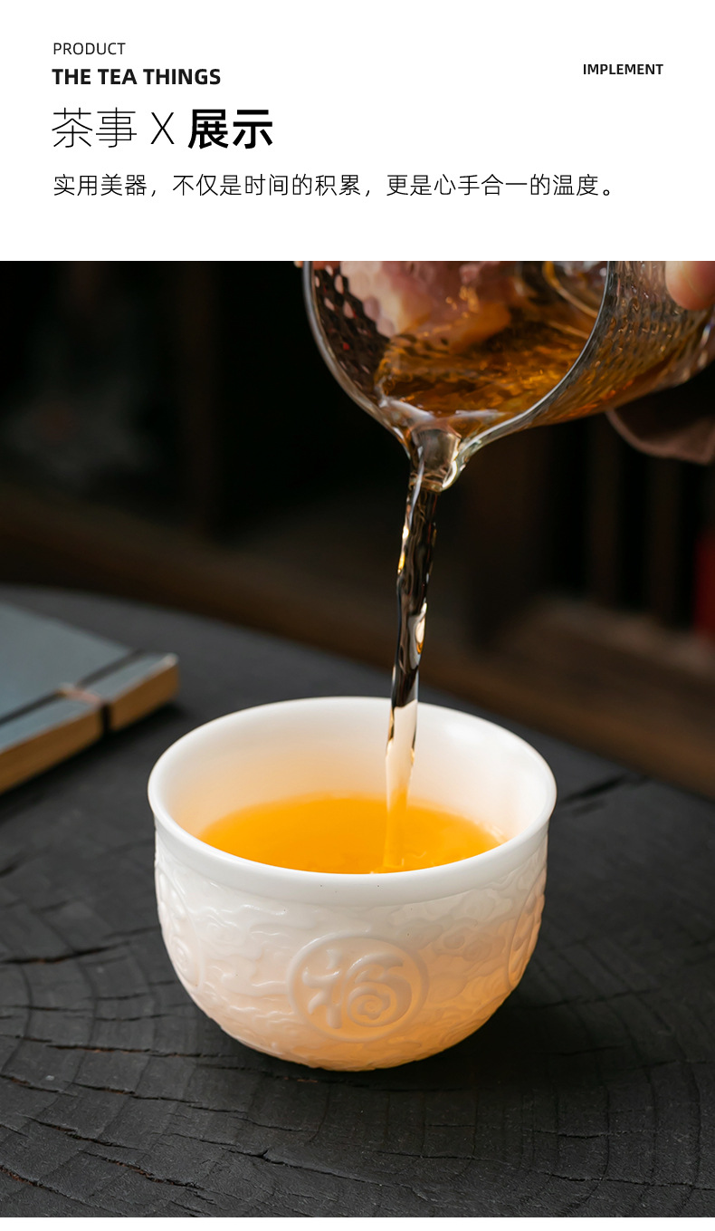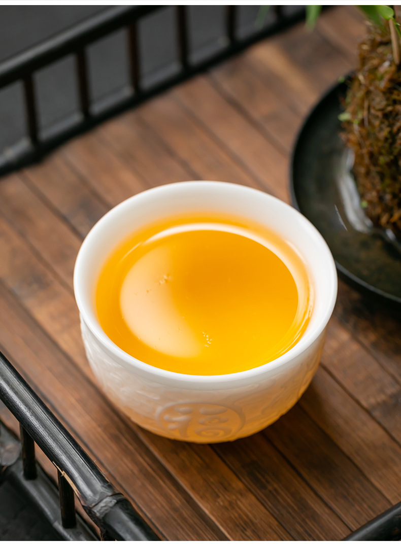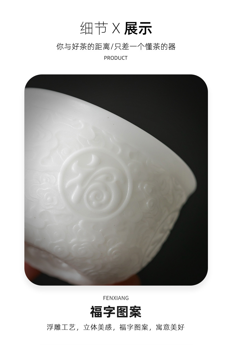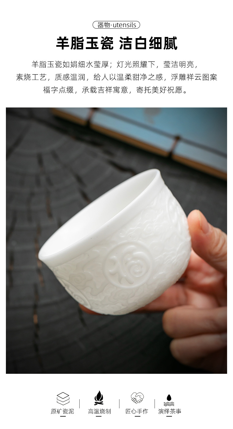 徳化手工羊脂玉浮彫り功夫茶杯、陶磁器製茶杯、功夫茶杯、家庭用香りを嗅ぐための茶杯