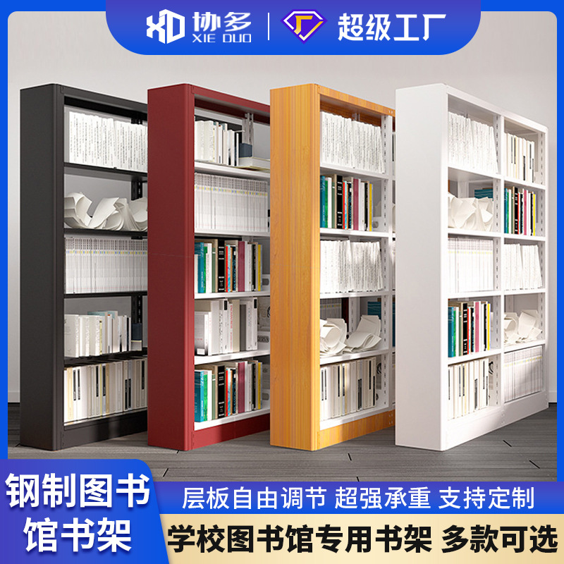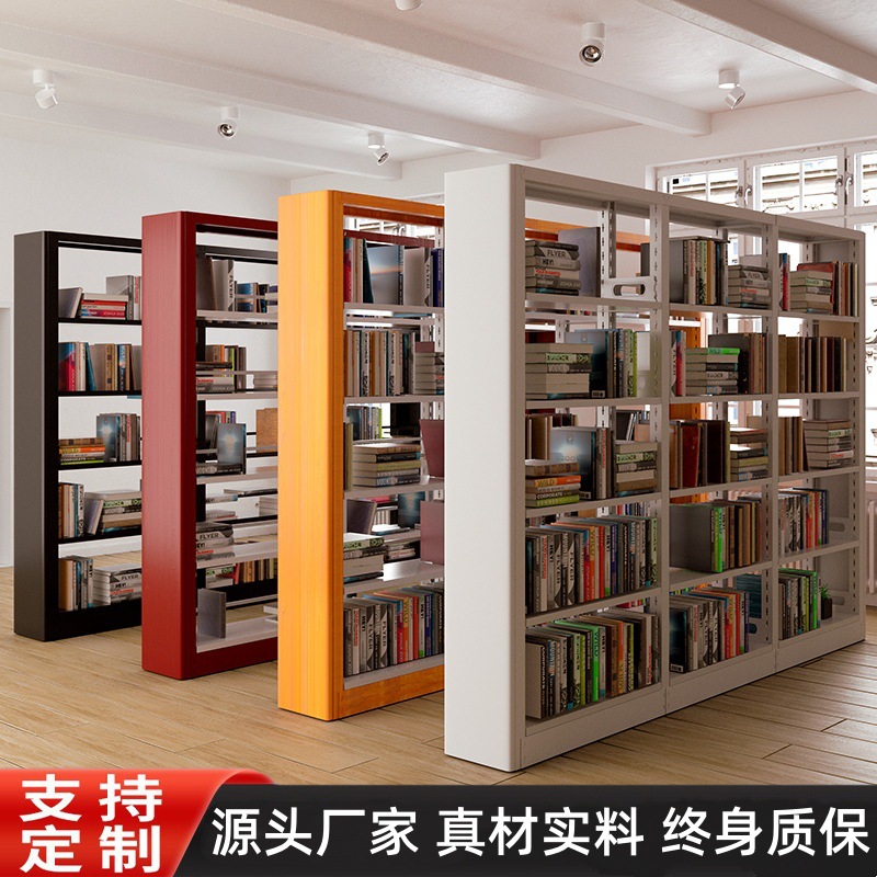 钢制书架学校图书馆书架单双面书架阅览室铁皮收纳架落地书架厂家