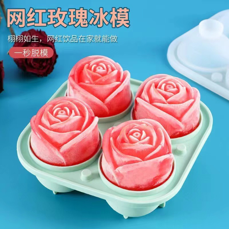 食品級TPR四連バラ製氷金型ウイスキー家庭用大型シリカゲル冷凍アイス