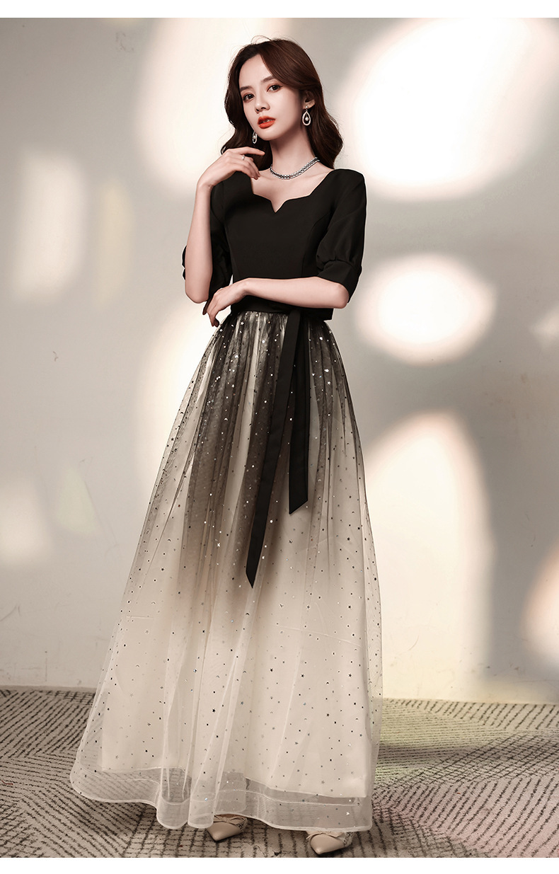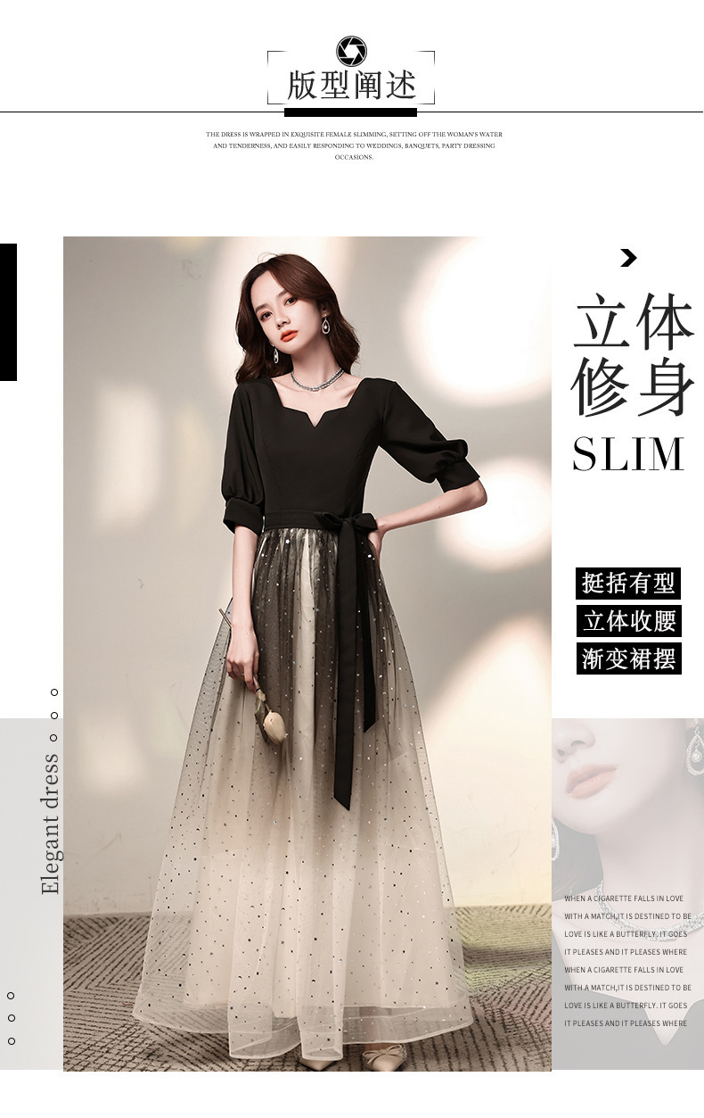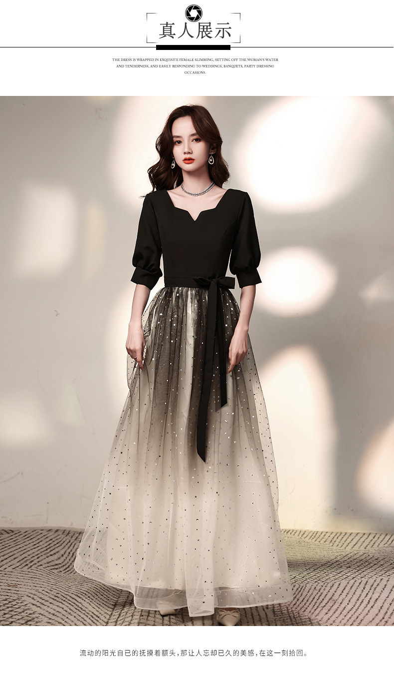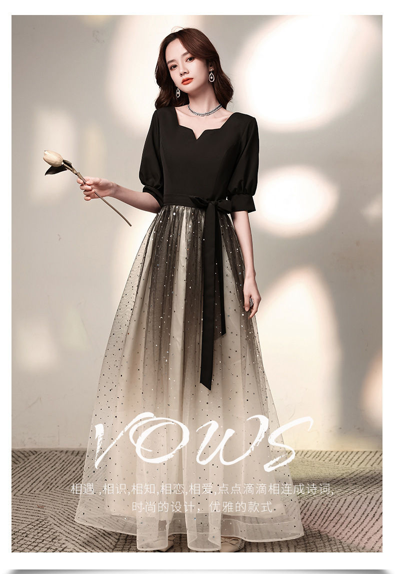 イブニングドレス女性宴会2025新作ブラックライトラグジュアリーニッチ高級質感成人式ロングアートテストドレス