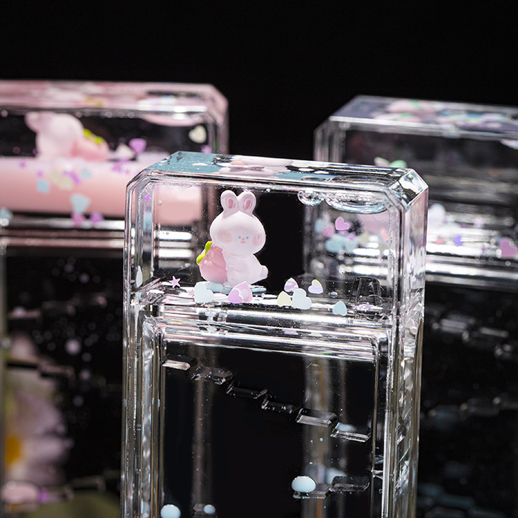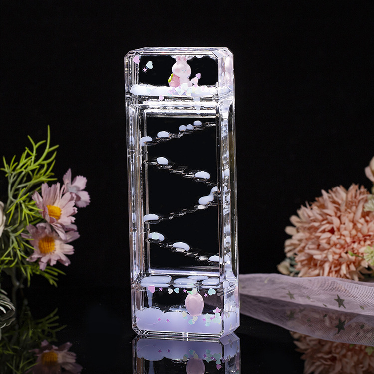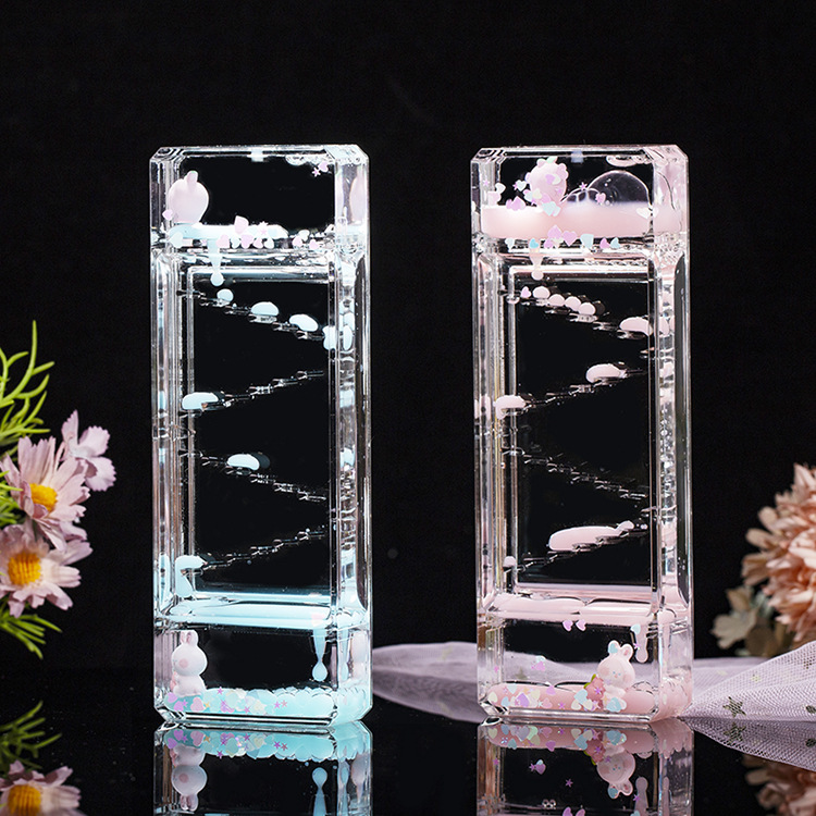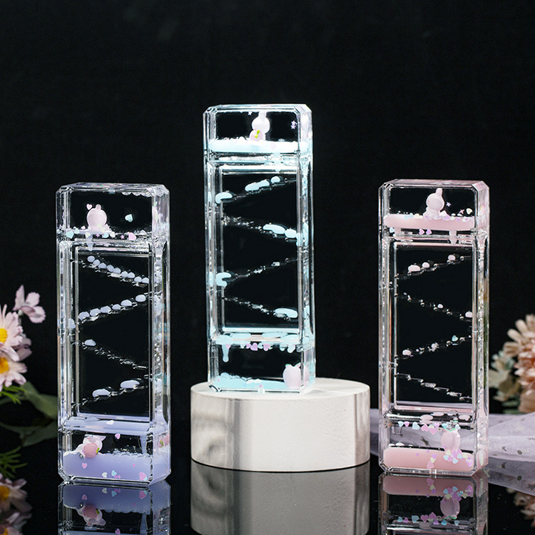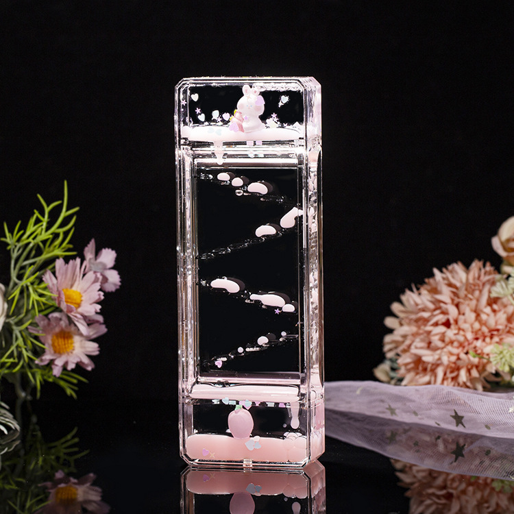 ディザトーンの同じモデルの桃のウサギの滑り台の油滴の長方形の漫画の砂時計の子供のおもちゃの浮き沈みの液体のデスクトップの置物