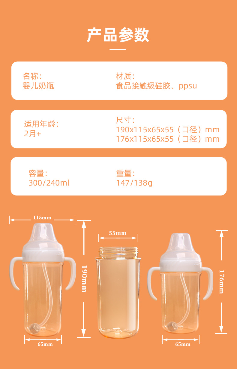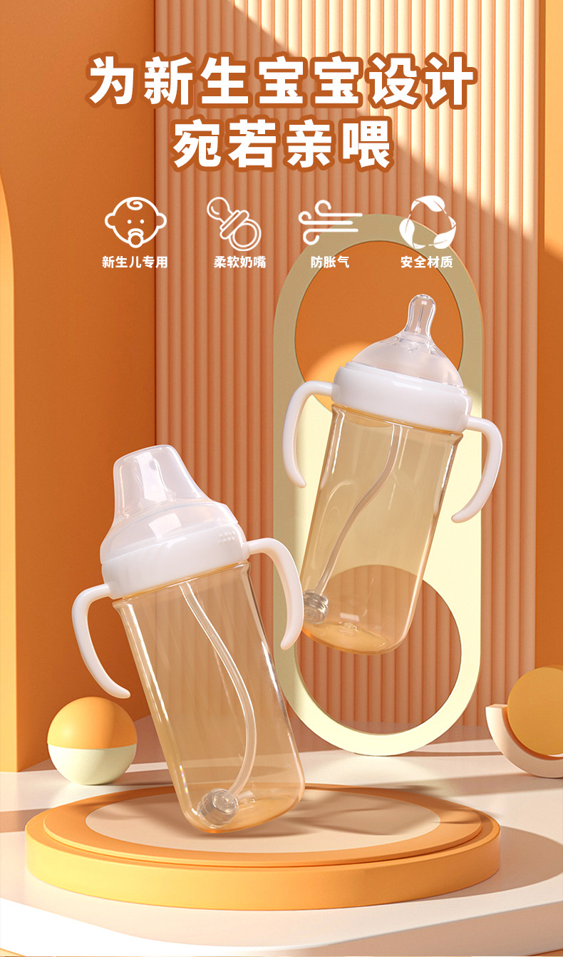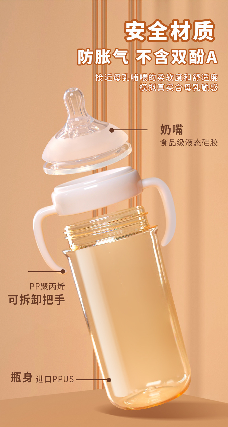 カスタム赤ちゃんPPSU哺乳瓶ワイド口径ハンドル付き大容量耐落下防止膨張防止一歳赤ちゃんストローミルク
