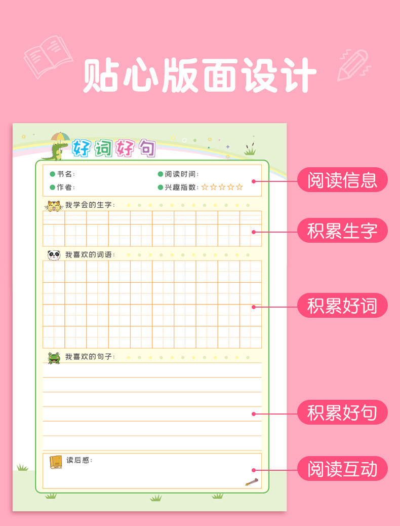 好词好句摘抄本定 制学生日积月累读书笔记阅读记录本课外读后感