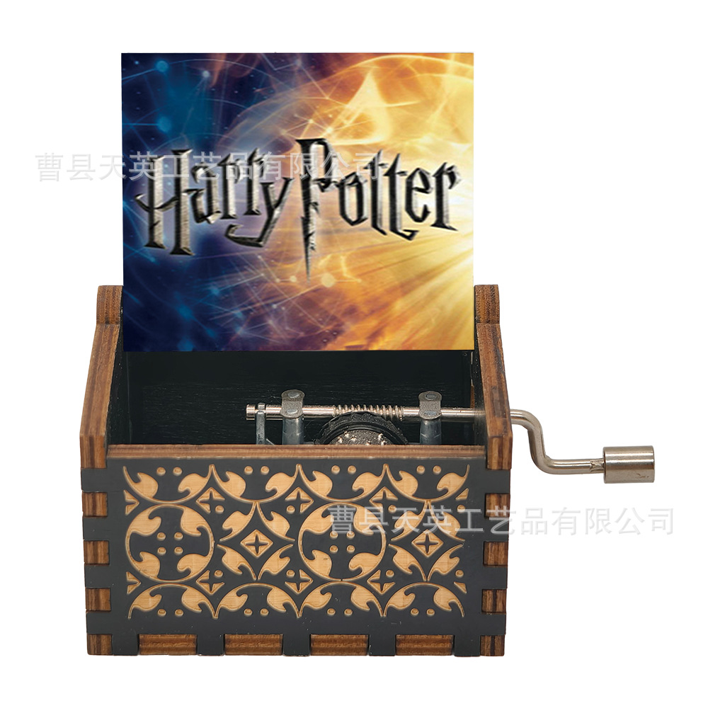 彩绘哈利波特手摇木质雕刻八音盒音乐盒批发摆摊工艺品摆件送礼物