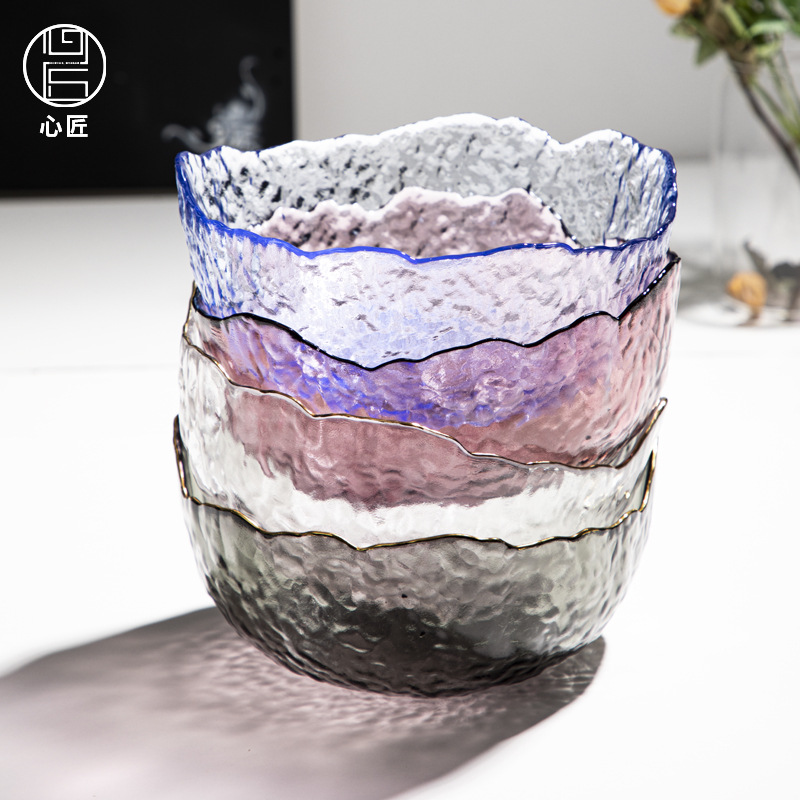 心匠北欧式多色金辺ガラスボウル家庭用調理器具果物サラダボウル創造的不規則サラダボウル
