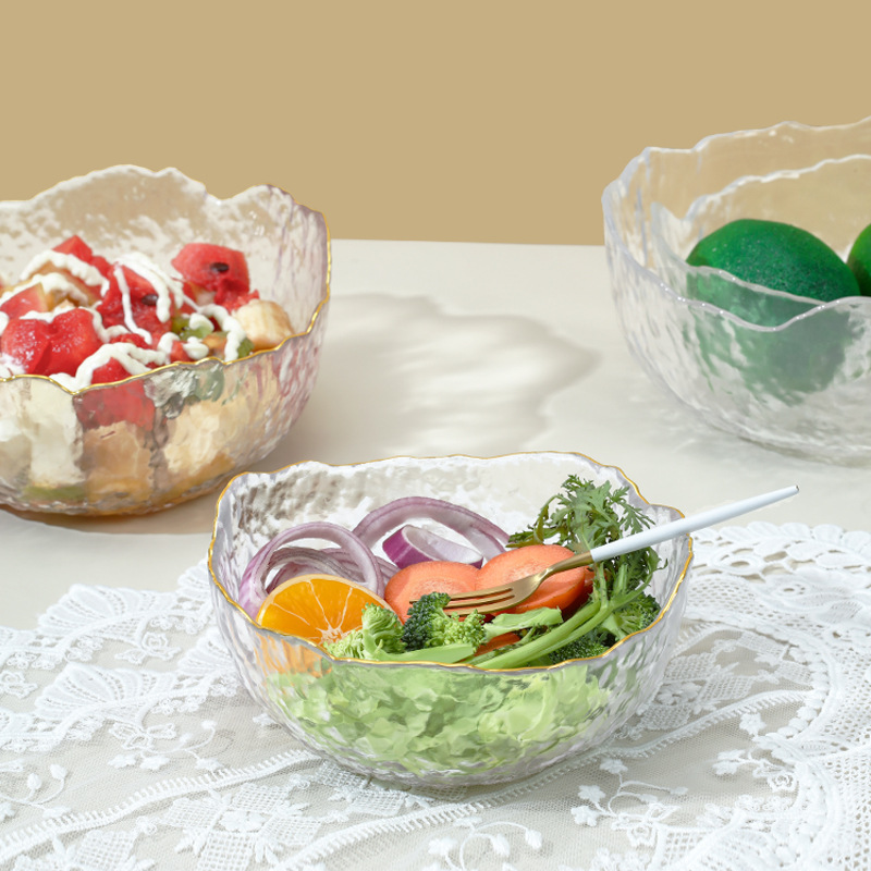 心匠北欧式透明金辺ガラス碗大型家庭用食器野菜果物サラダ碗ガラスデザート碗