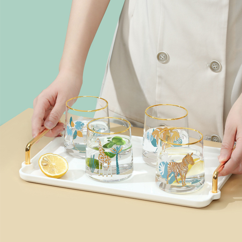 心匠アニメガラスコップ女性シンプルinsクリエイティブ動物シリーズプリント金かわいい透明家庭用