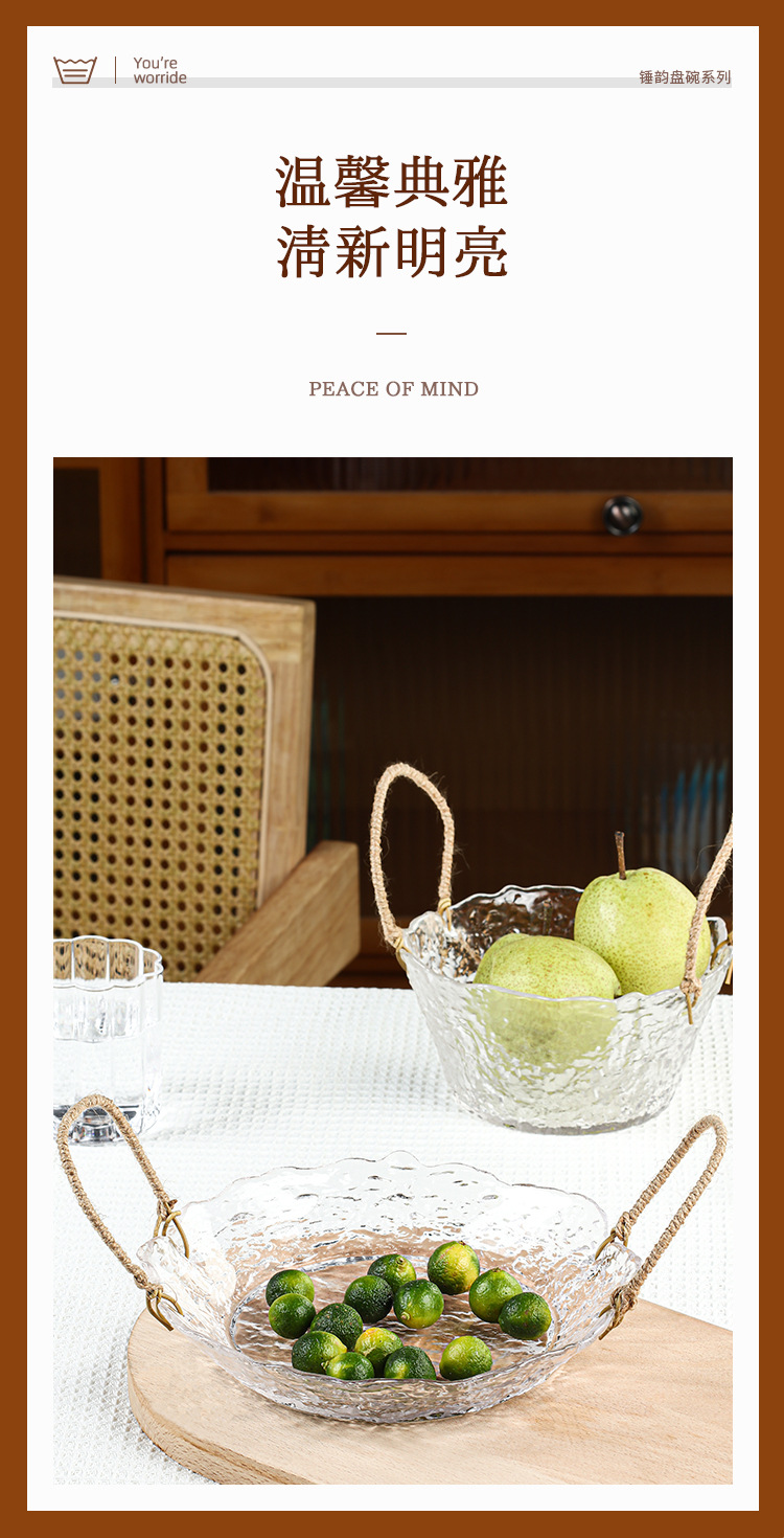 果物皿軽豪華水晶ガラス皿路地尾麻縄皿キャンディー間食ハンマーガラス皿瓜子果籠