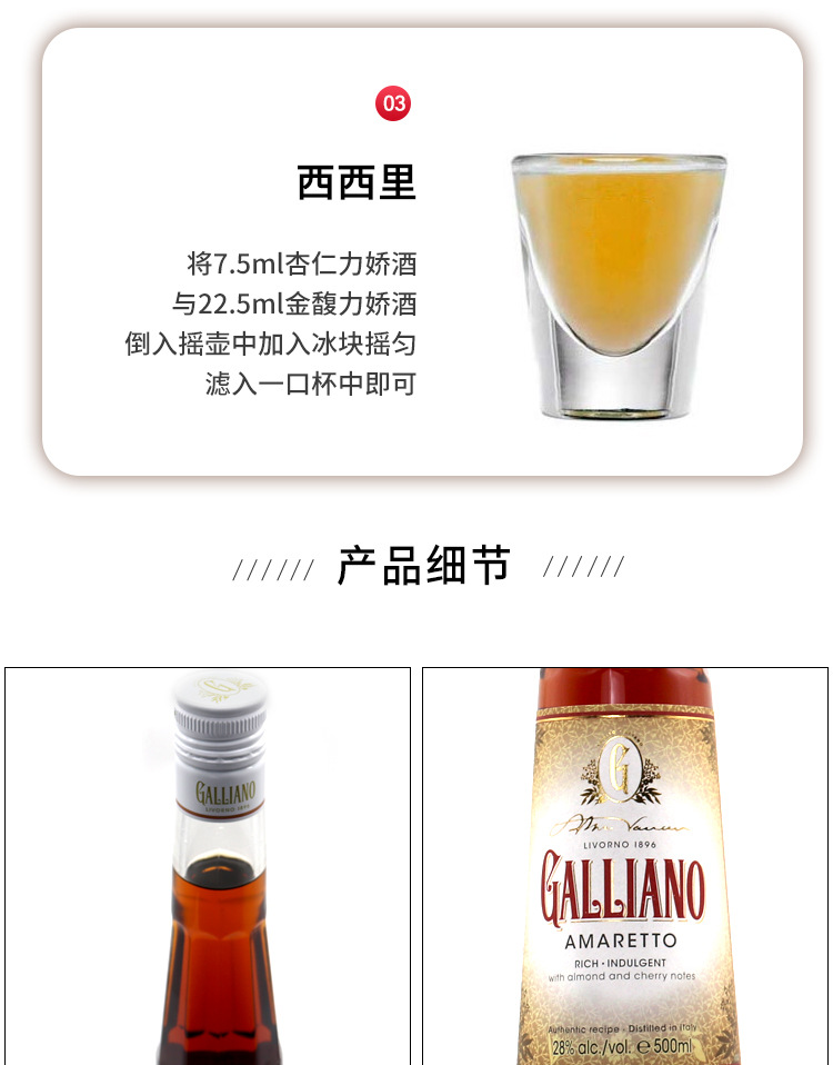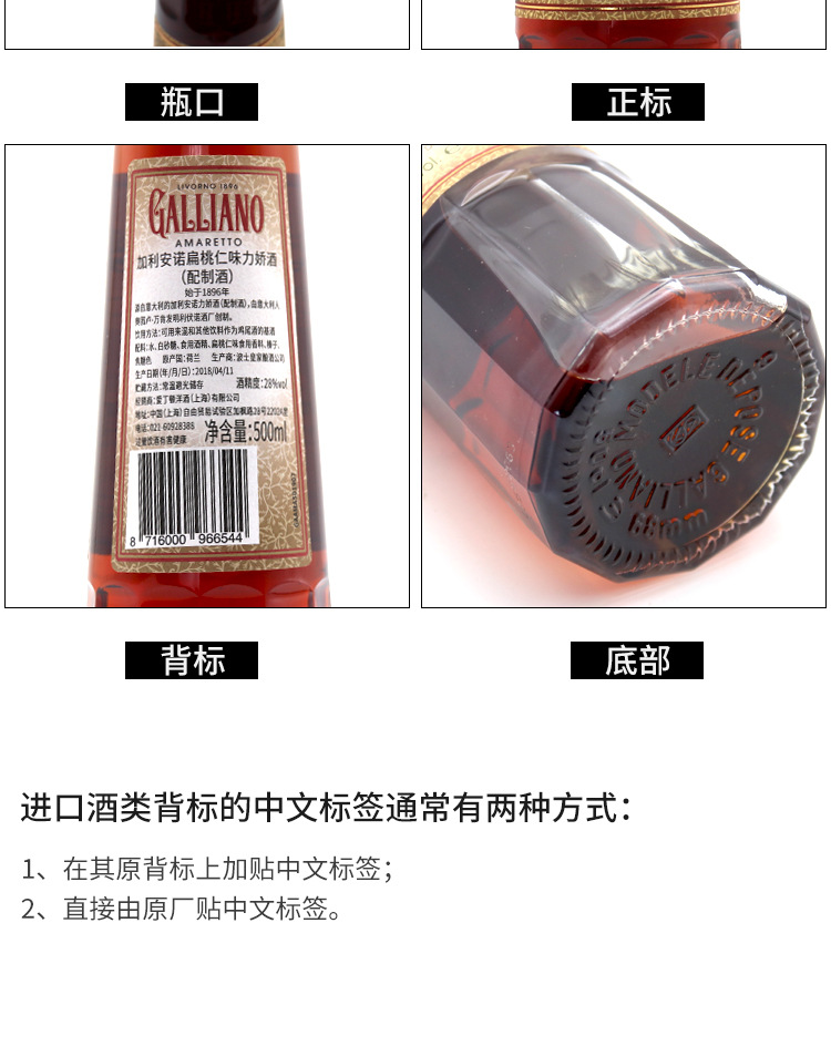 パッケージ仕様 ガリアーノ扁桃仁味500ml
