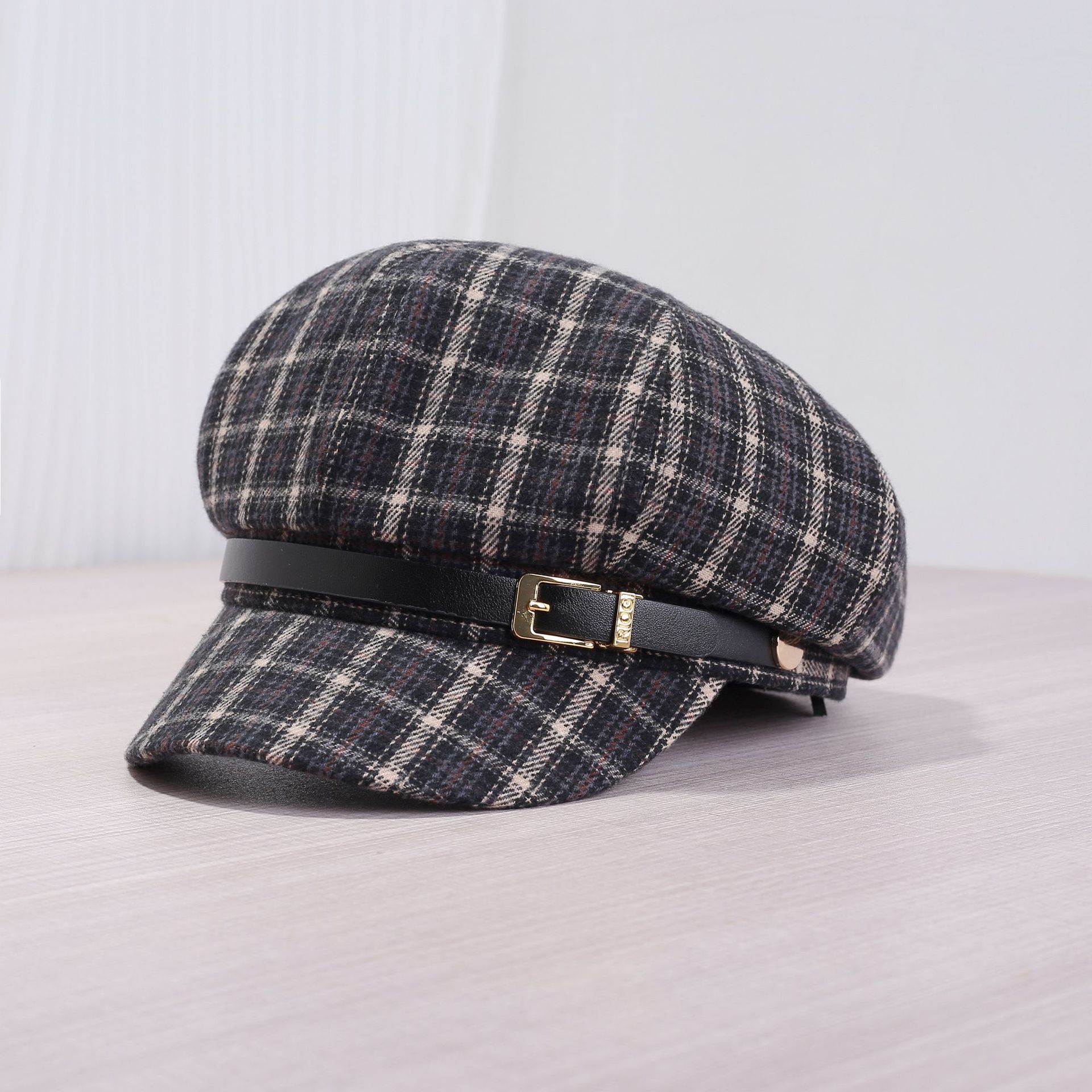 2025韩版格子八角帽贝雷帽子女春秋季报童帽网红时尚鸭舌帽画家帽