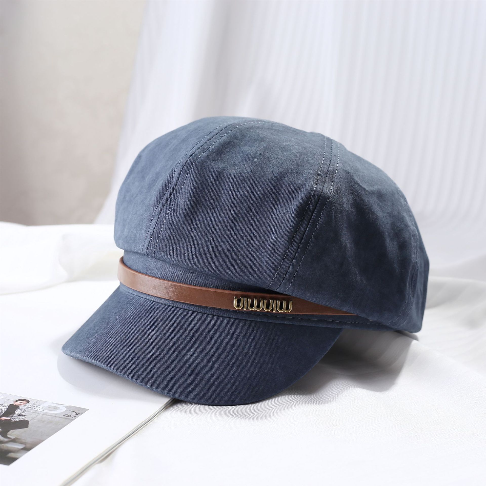 韩版经典小香格纹pu皮拼接八角帽子女春秋季出游百搭显脸小画家帽