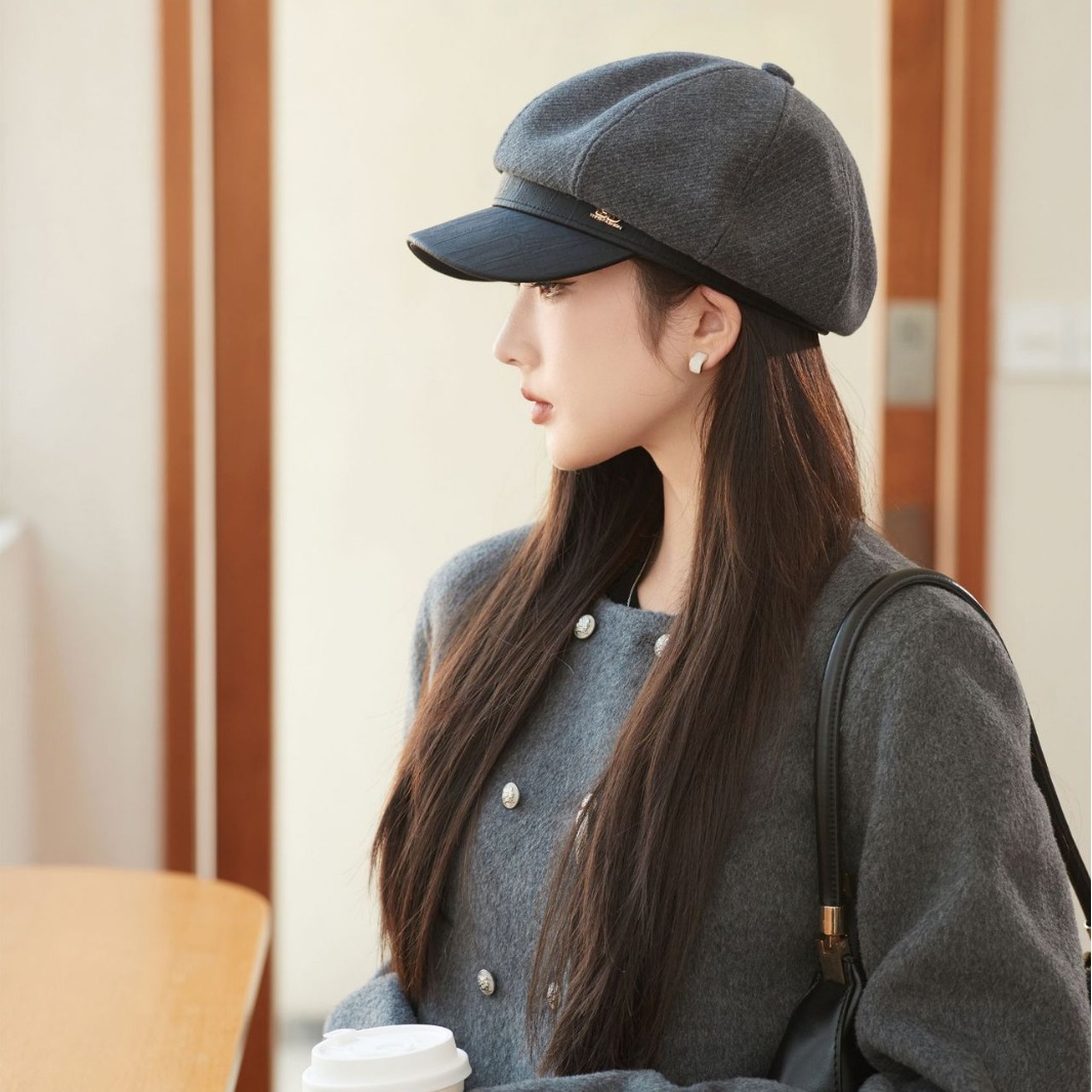 おしゃれな秋冬の韓国版の格子縞のレトロな毛は、八角帽子と秋冬の雰囲気感をつなぎ合わせてベレー帽を合わせます。