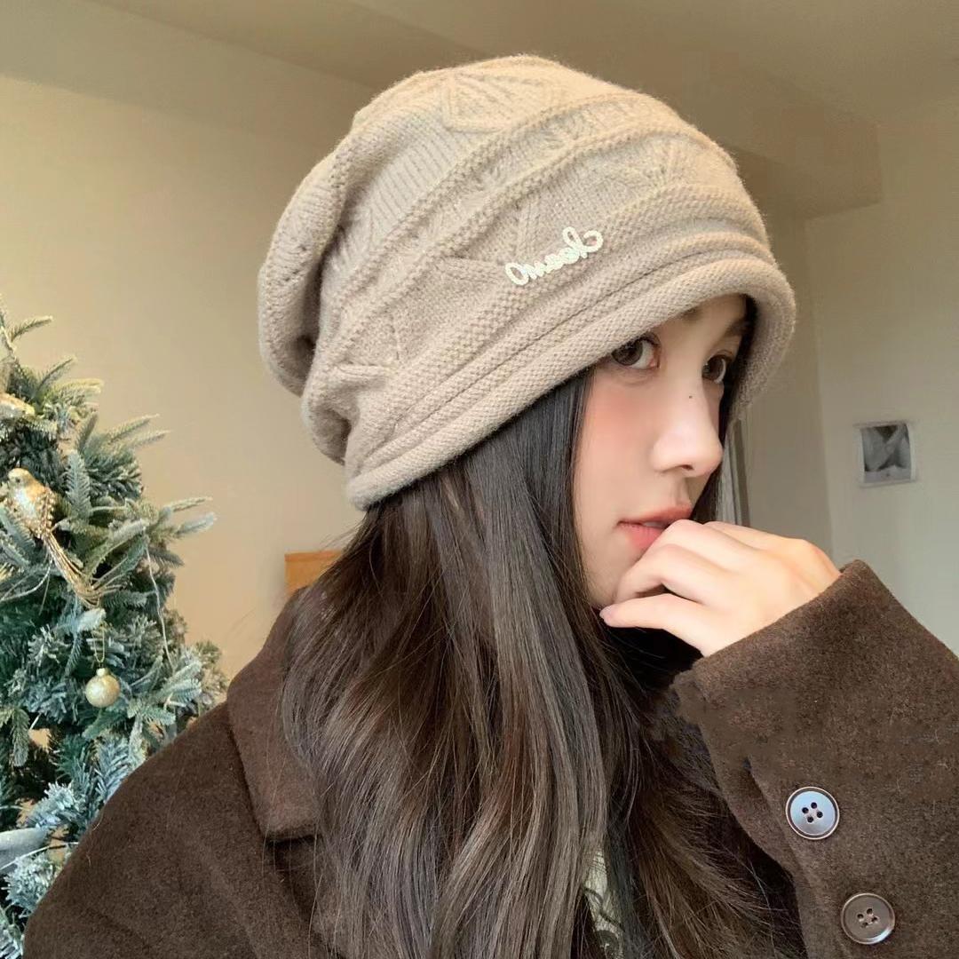 秋冬季毛线帽子女大头围彩线混织套头帽加厚保暖护耳条纹针织帽潮