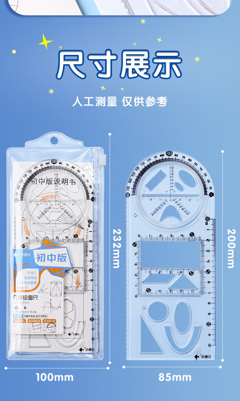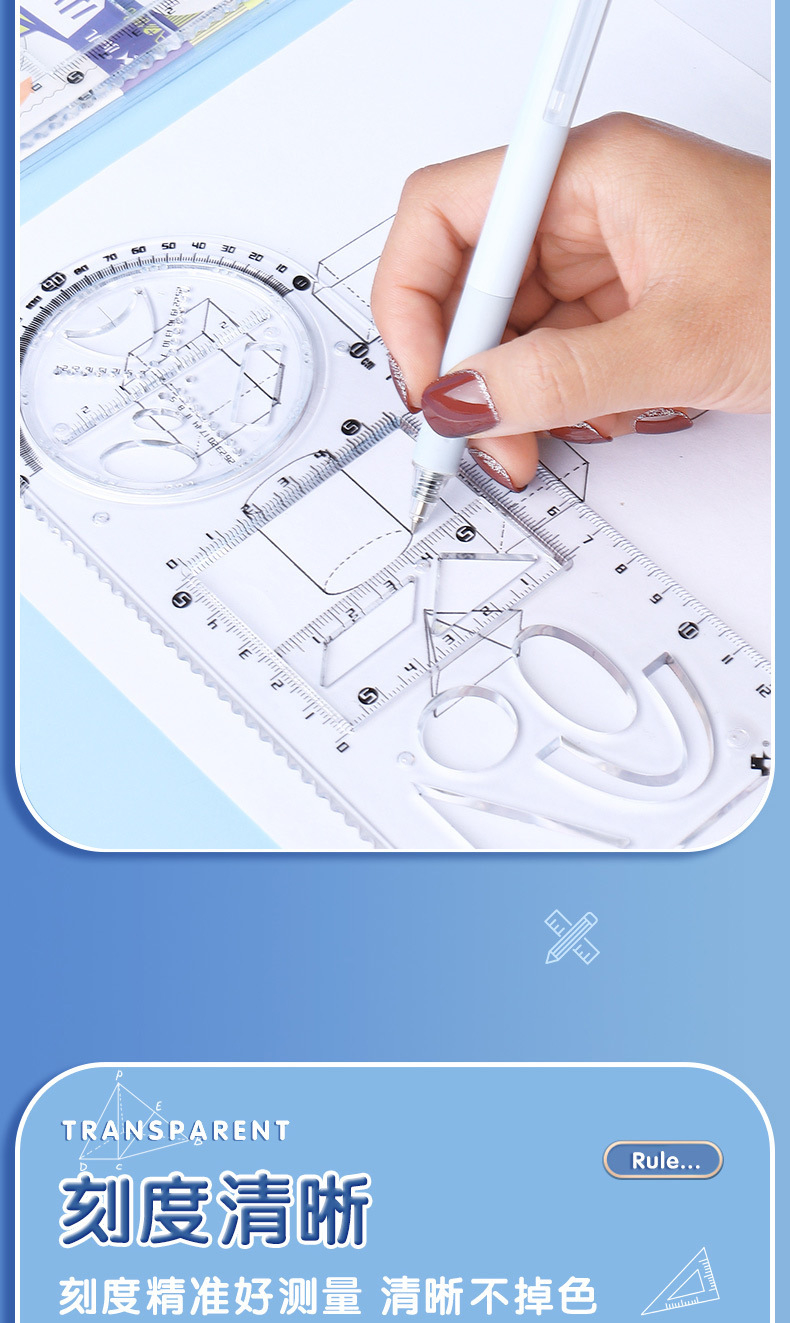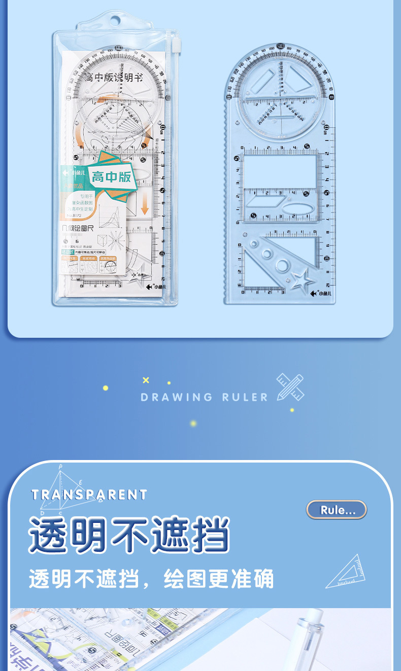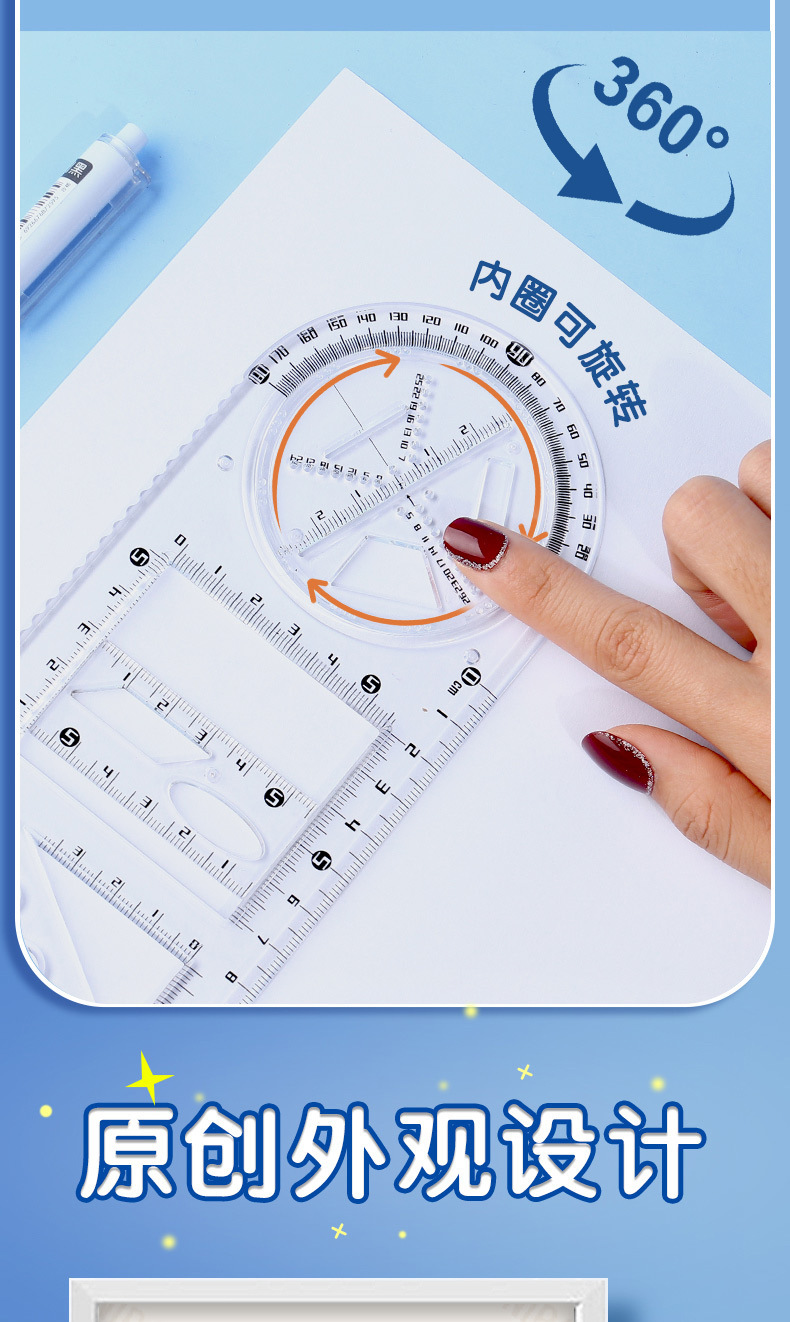 多功能尺子小学生专用初中生几何图形绘画尺三角尺套装制绘图格尺