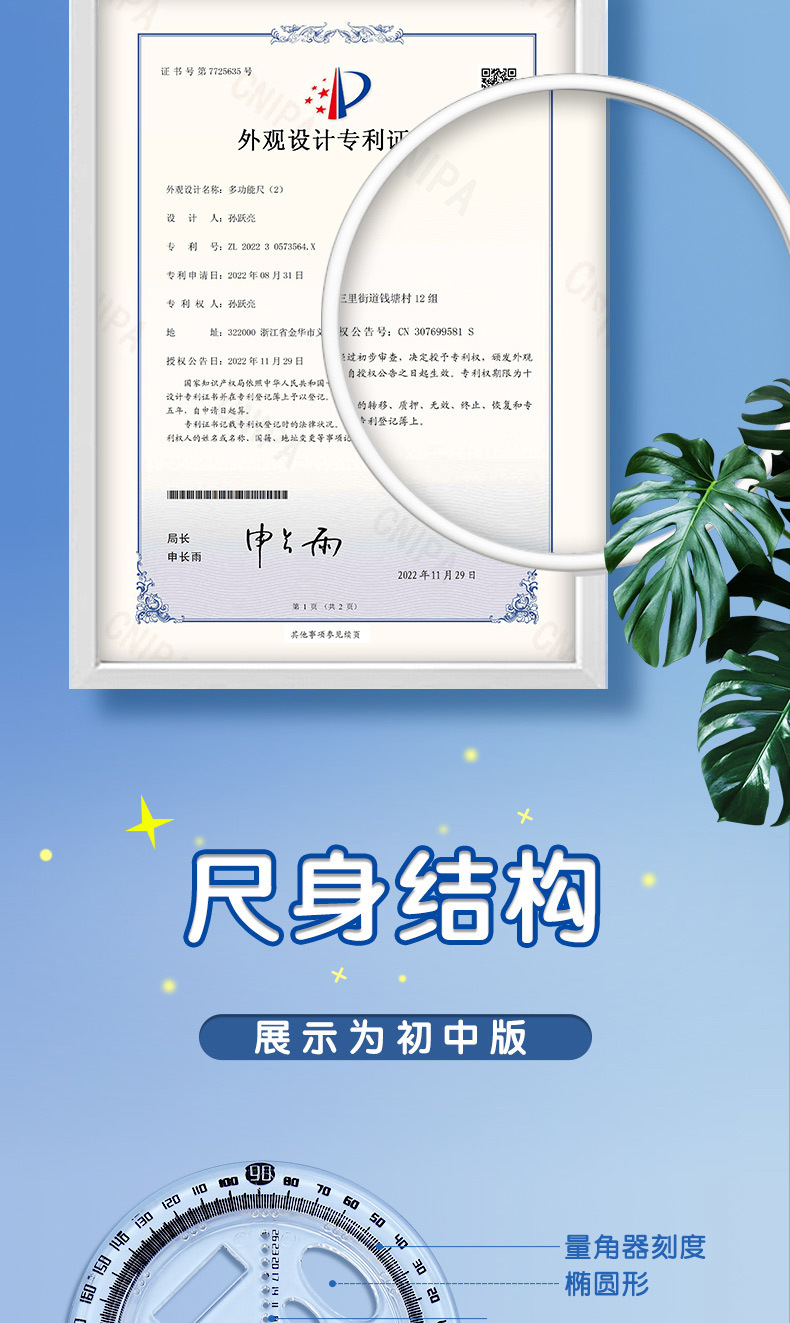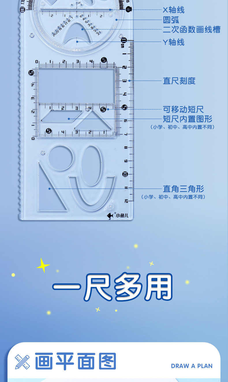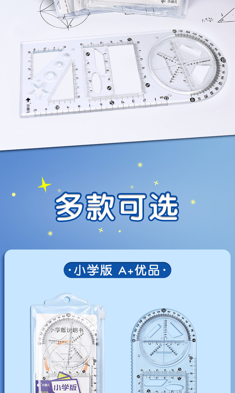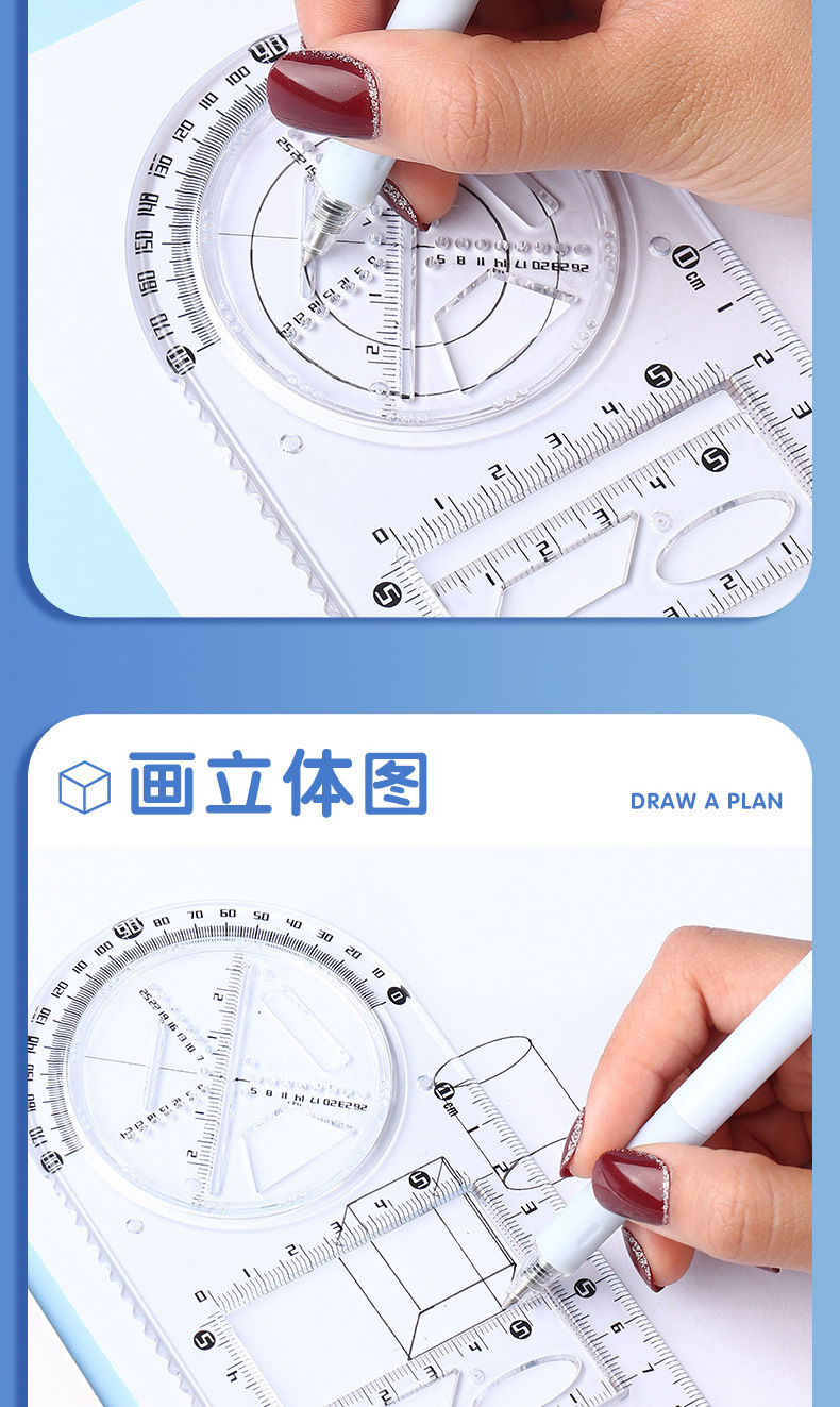 多功能尺子小学生专用初中生几何图形绘画尺三角尺套装制绘图格尺