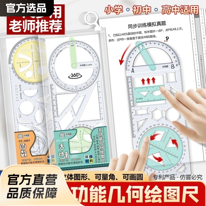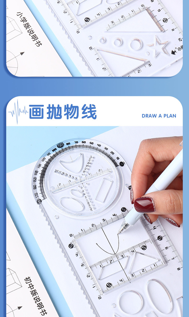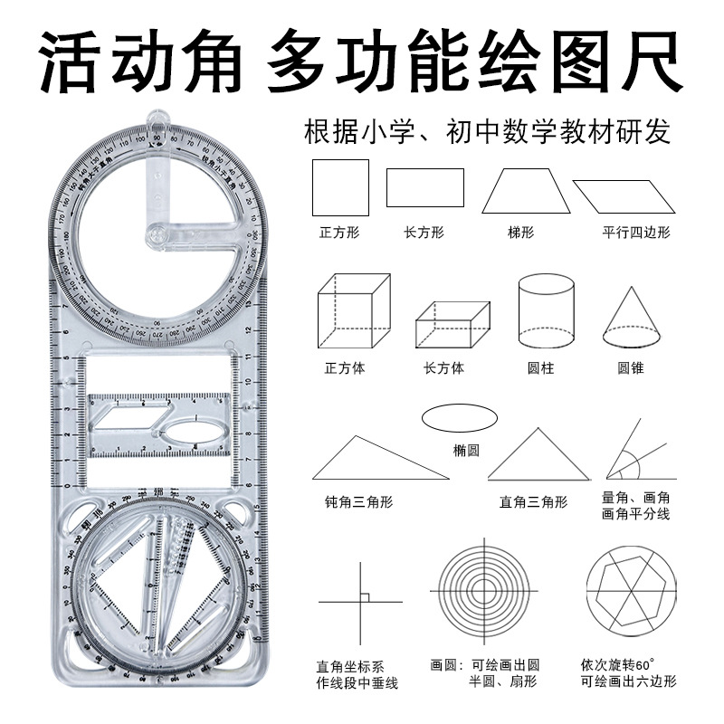 多機能幾何学製図尺中学校高校小学生活動式関数平面図形画角尺測定器