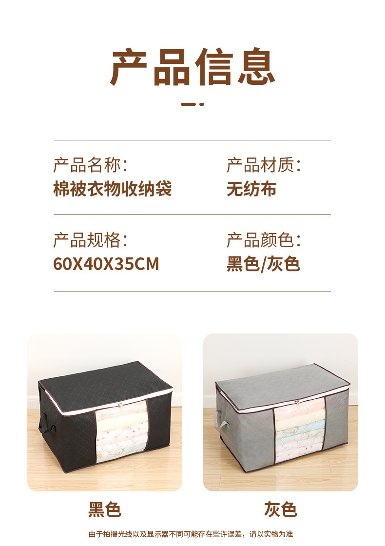 大容量横縦型不織布ファスナー綿布団袋可視引っ越し家庭用衣類枕布団収納袋