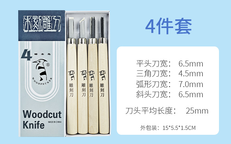 啄木鸟木刻刀套装版画工具雕刻刀橡皮章学生手工木雕刀美术橡皮章