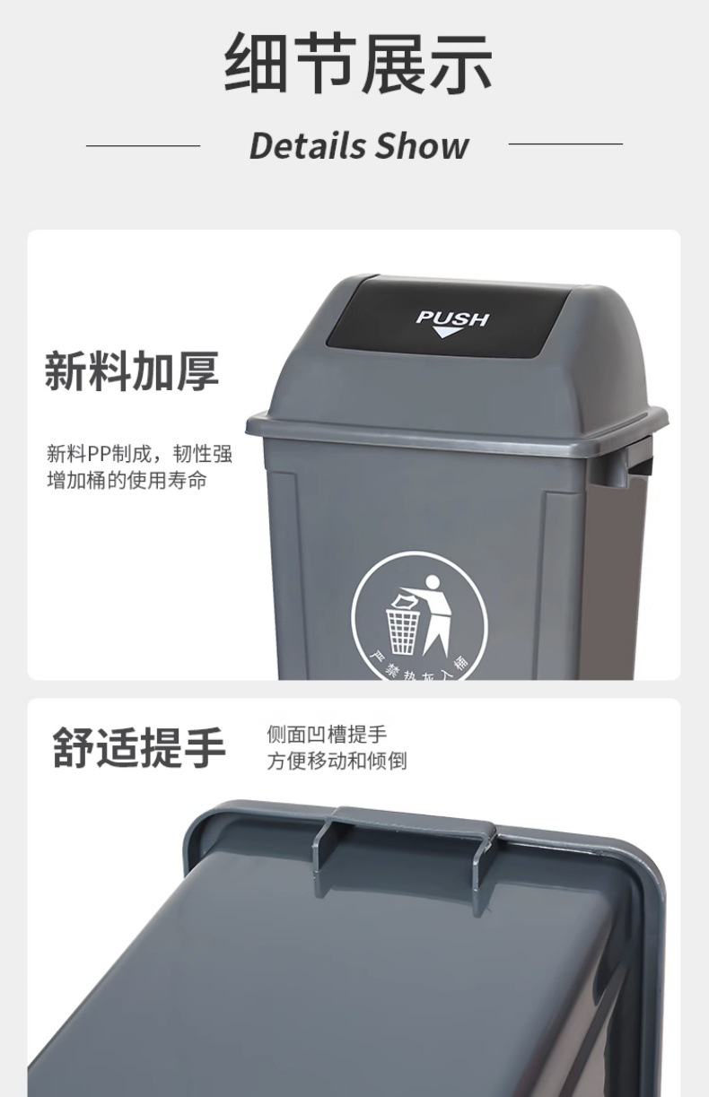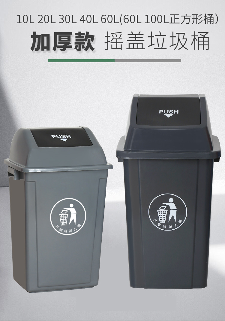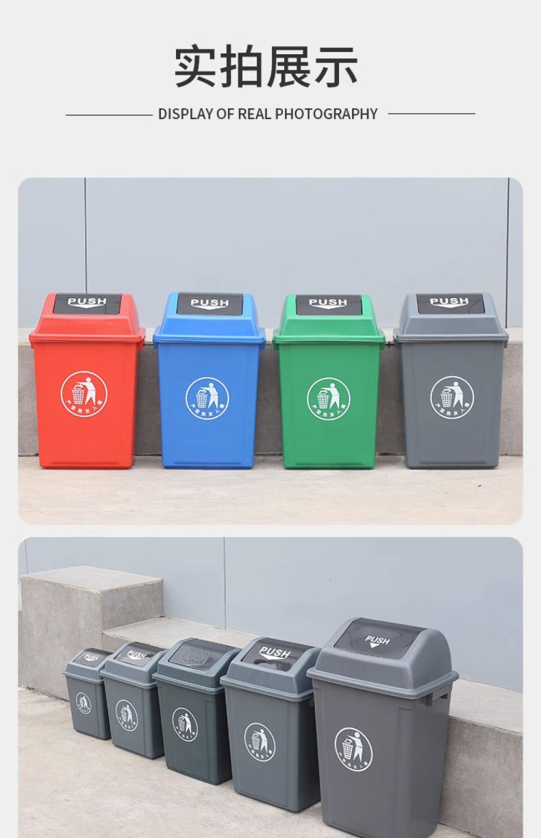 40Lプラスチックゴミ箱蓋付き大型分類環衛角型揺蓋室内学校厨房果殻箱卸売り