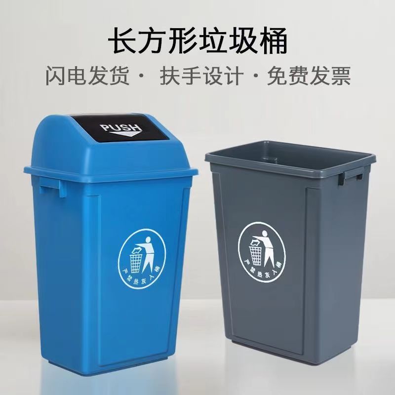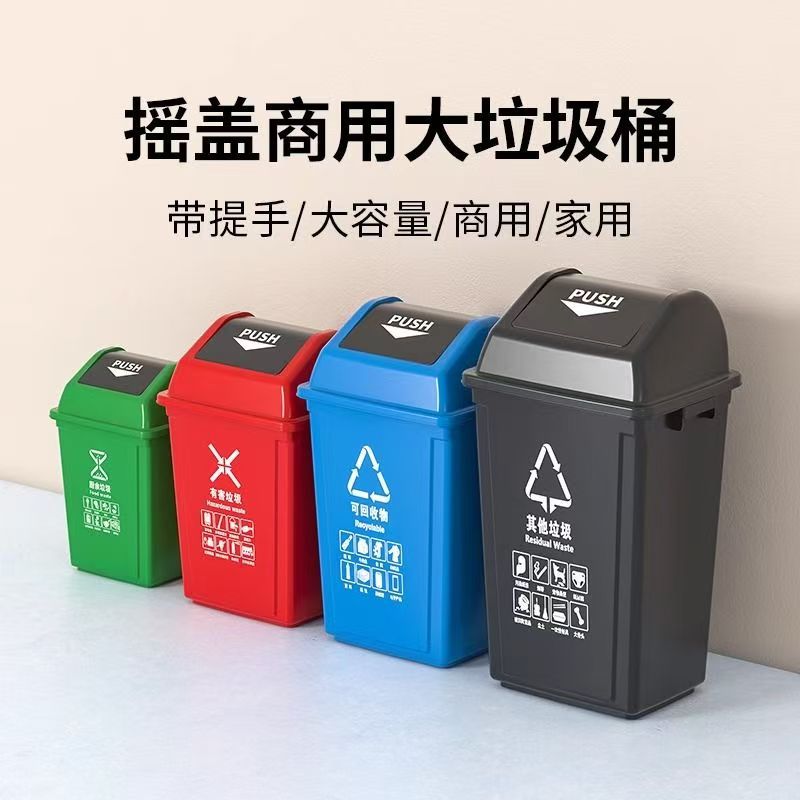 摇盖垃圾桶大号大容量四色长方形40L60L20家用学校带盖加厚垃圾箱