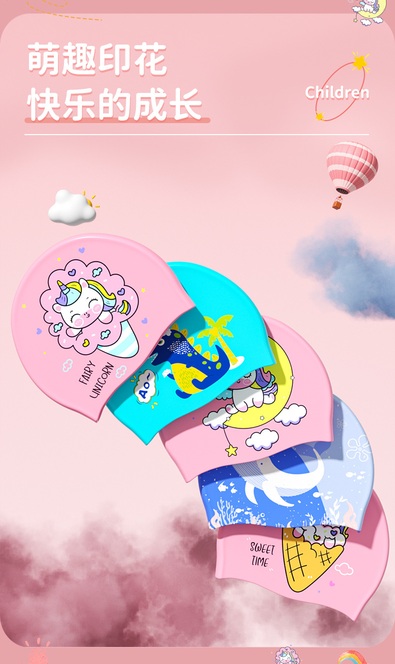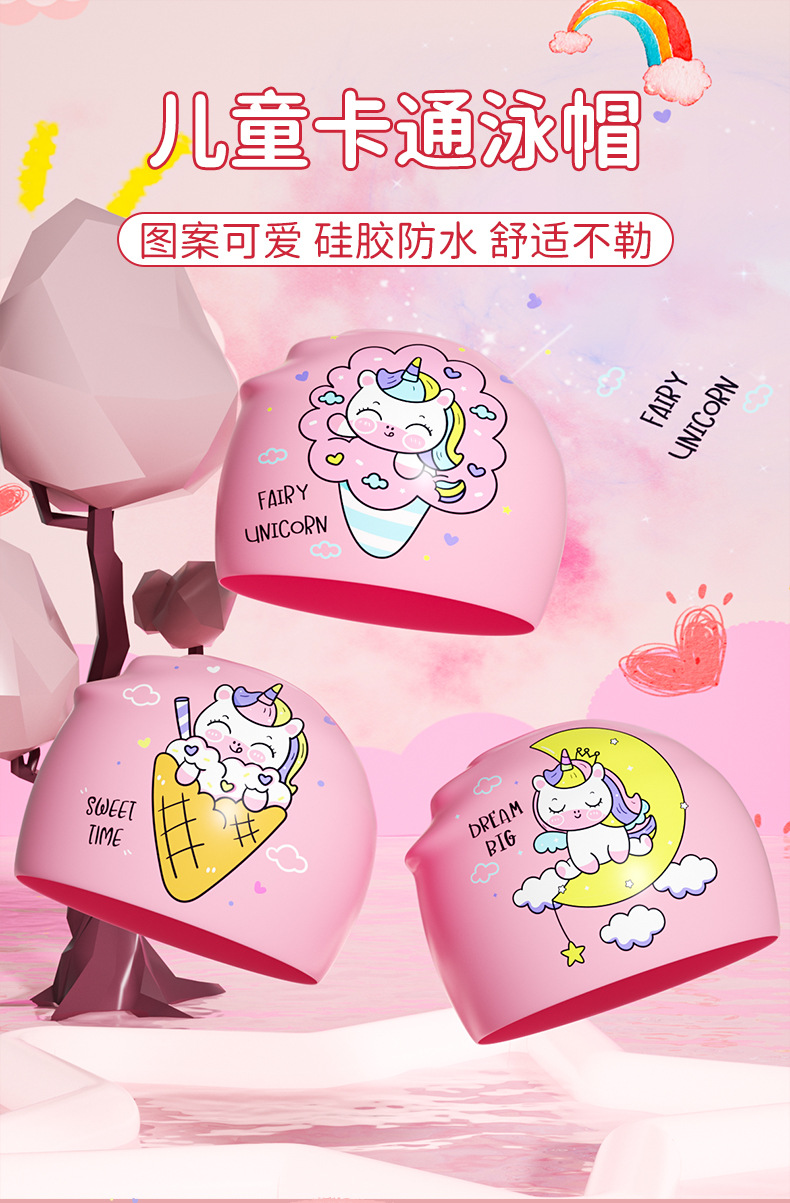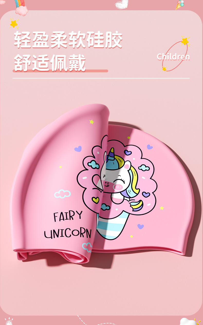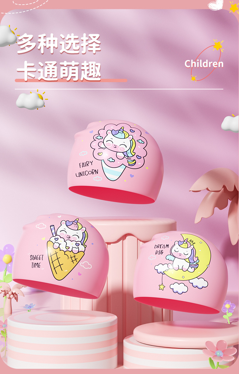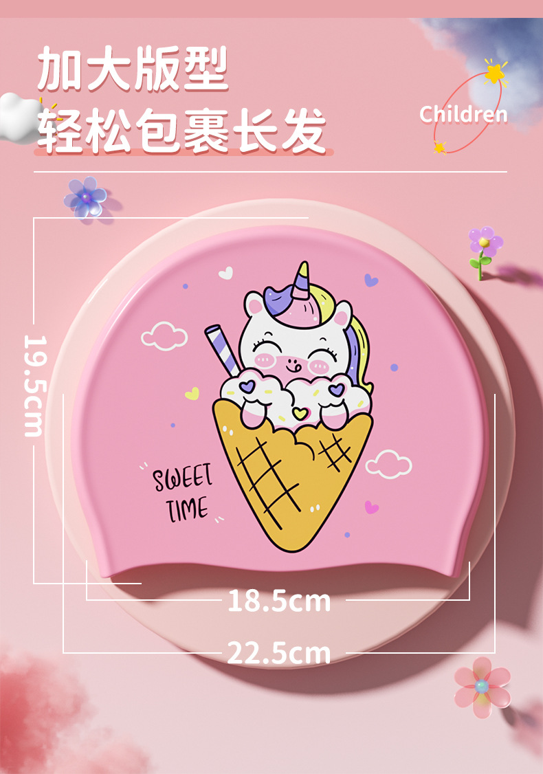 メーカー直販子供用水泳帽男女子供用ロングヘア防水首を絞めないファッションかわいい漫画シリコン水泳帽