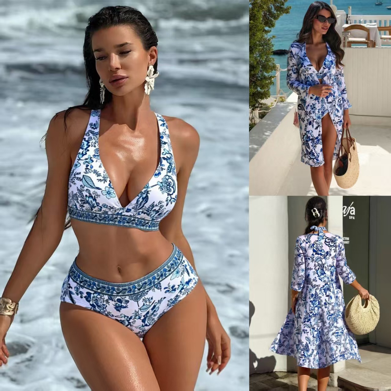 印花三点式比基尼泳衣女三件套新款欧美跨境亚马逊外贸分体泳衣