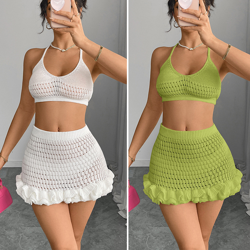 アマゾンの新しい夏のニットスーツビーチスカートスリムフィット純粋な欲望ヒップカバーフリルビキニスーツ女性用