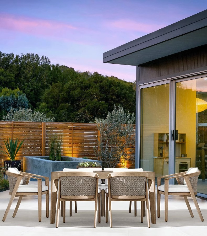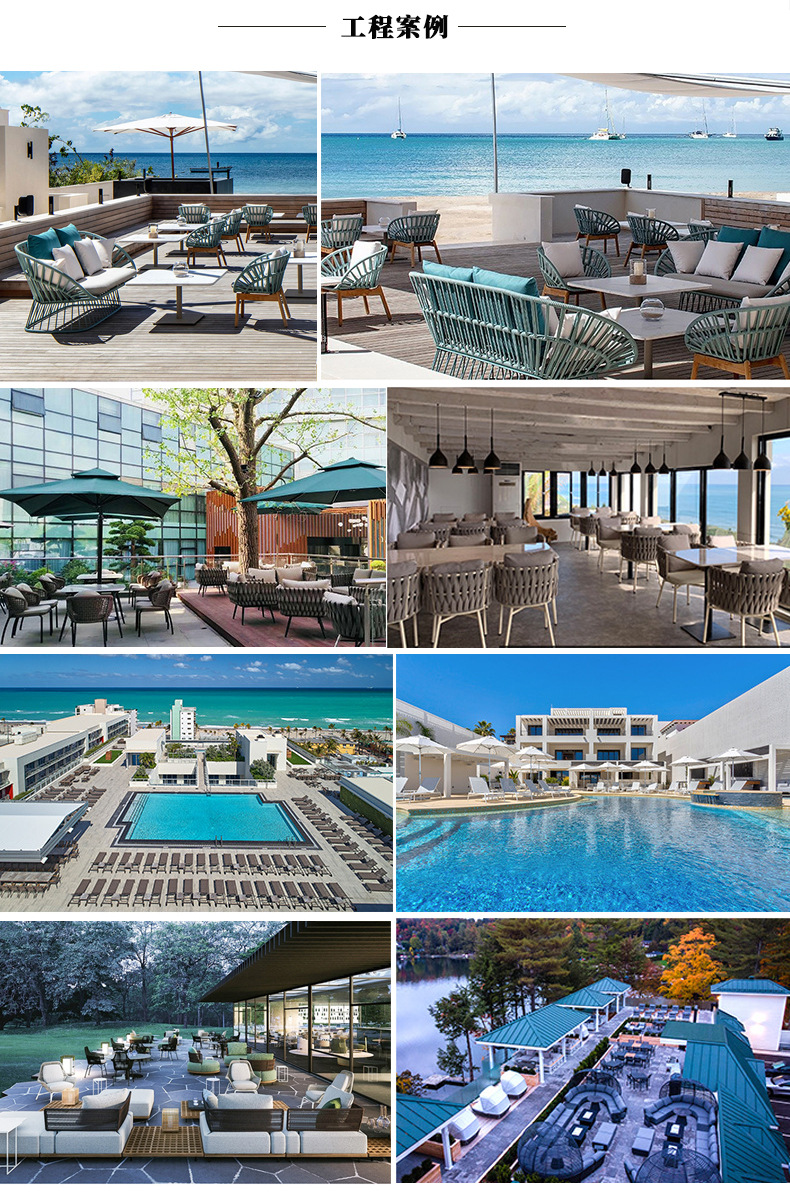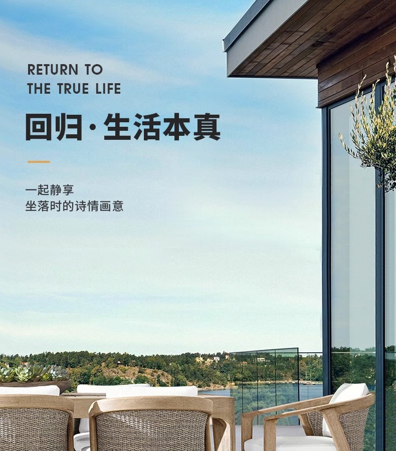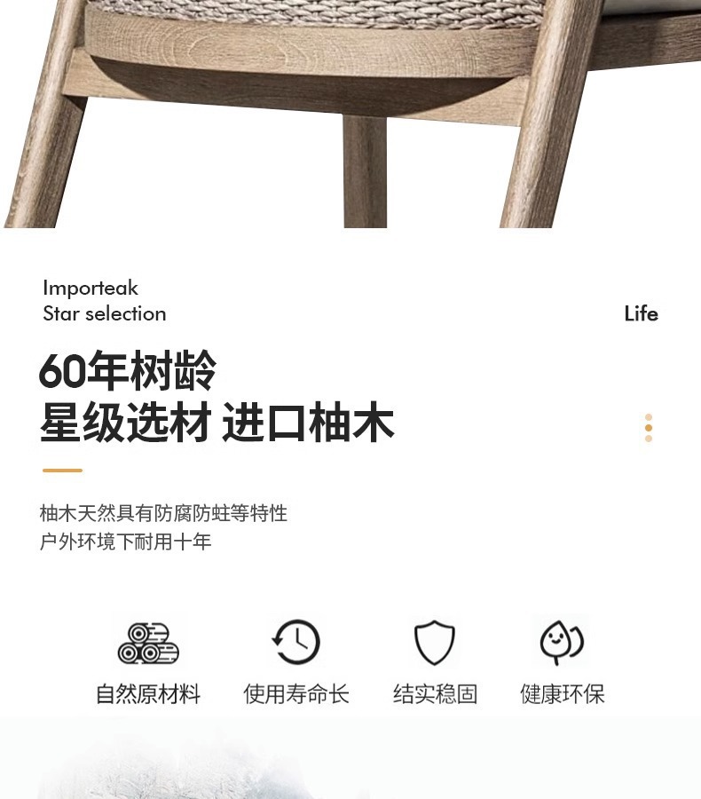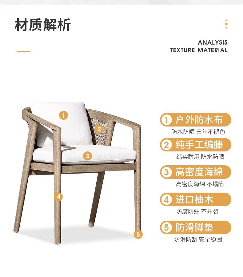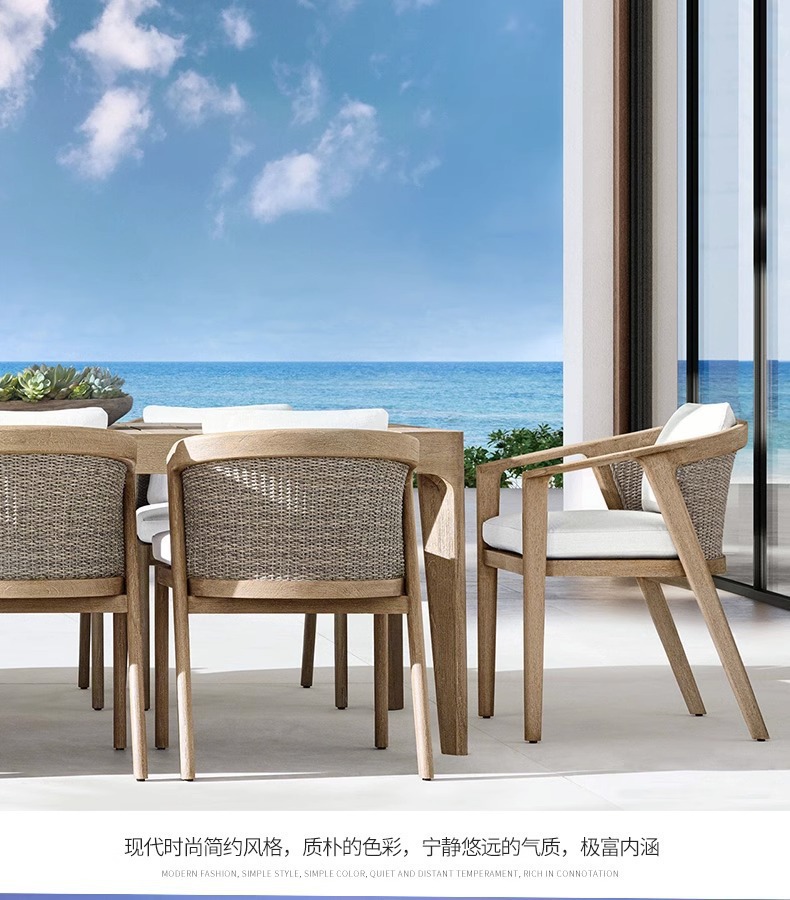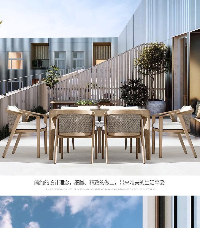 北欧屋外テーブルと椅子、中庭、屋外レジャー、防水、日焼け止め、ガーデン屋外アルミニウム合金プラスチック木製組み合わせ籐編み椅子