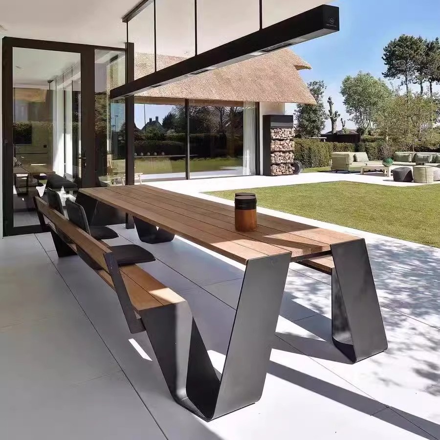 屋外のテーブルと椅子のレジャーの露店の庭の別荘のデザイナーのチークの木の公園の椅子の屋外の花園の食卓の露天の家具