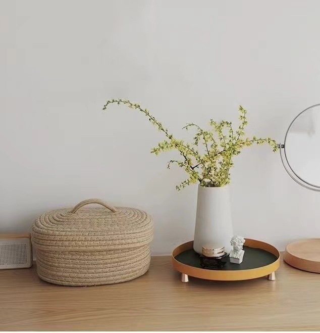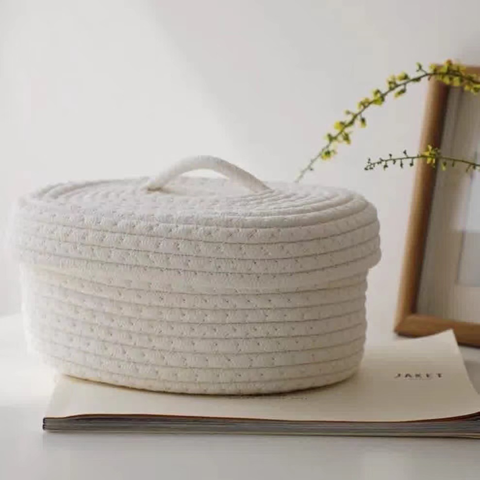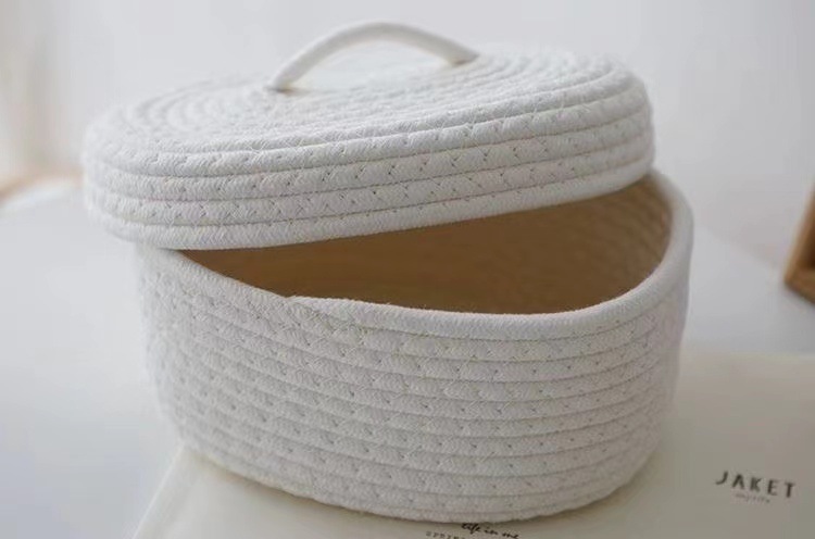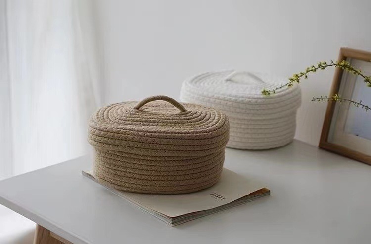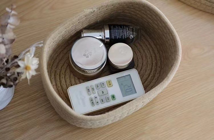 アマゾン手編み収納かご綿線デスクトップ雑品バスケット家庭玩具化粧品和式収納かご