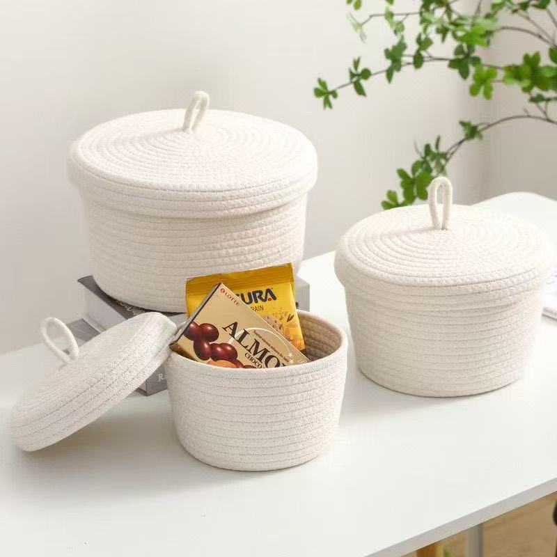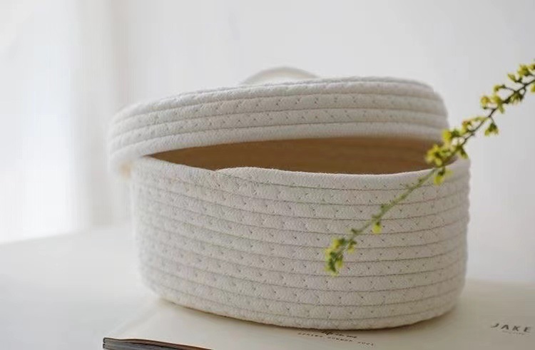 現代のシンプルな綿のひもはかごのデスクトップを整理してごみを整理します。