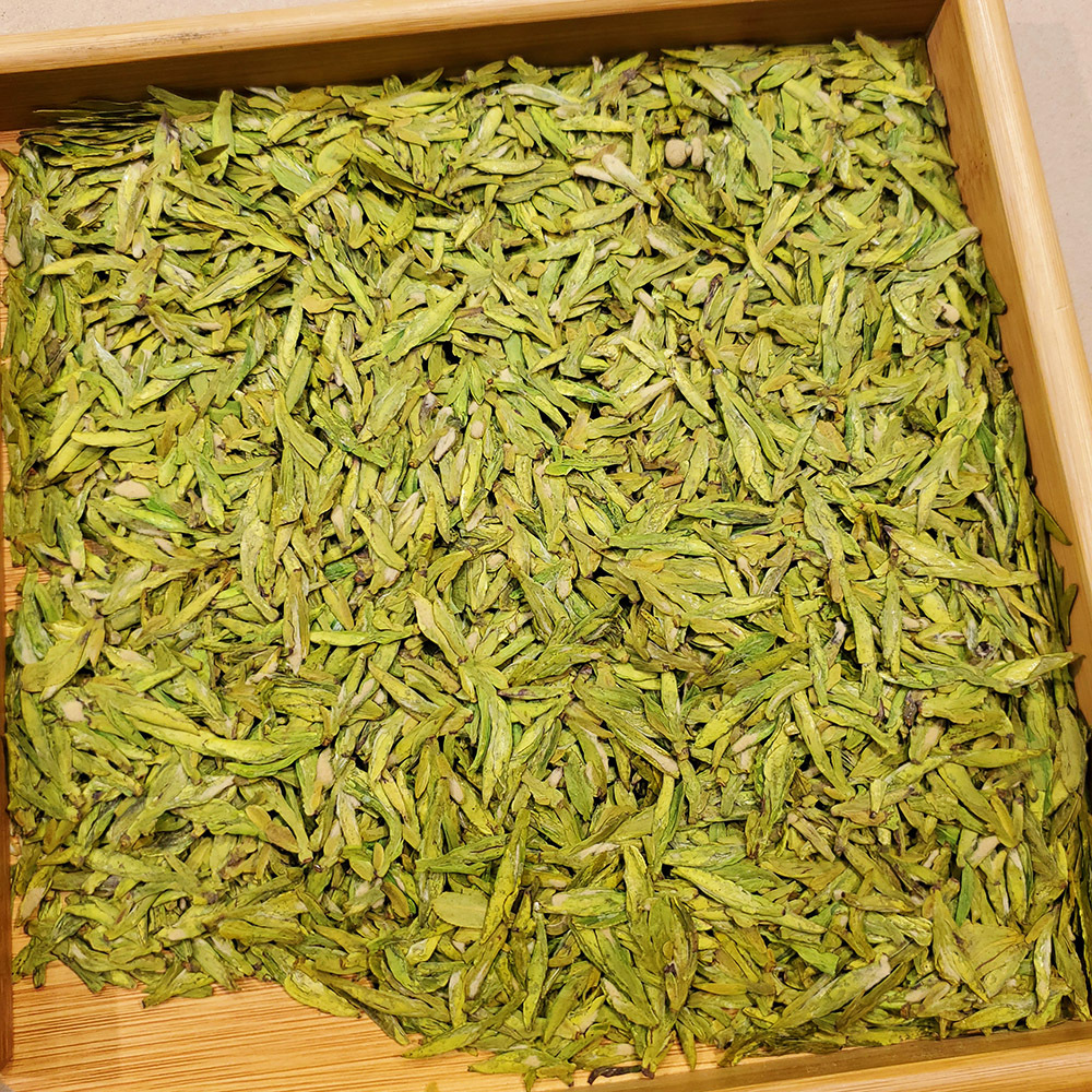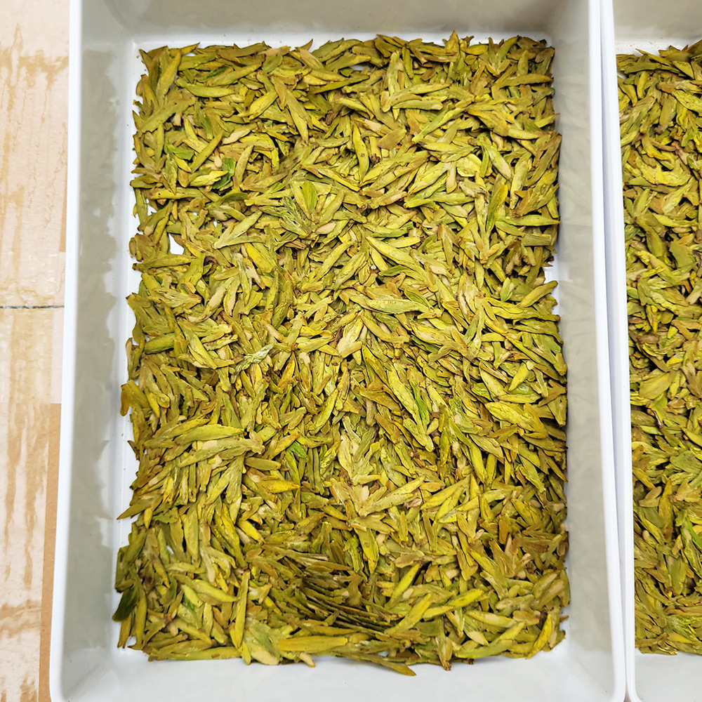 以下为 535元/斤明前头采A龙井43号 的实物拍摄干茶图片和茶汤图片 ↓↓↓