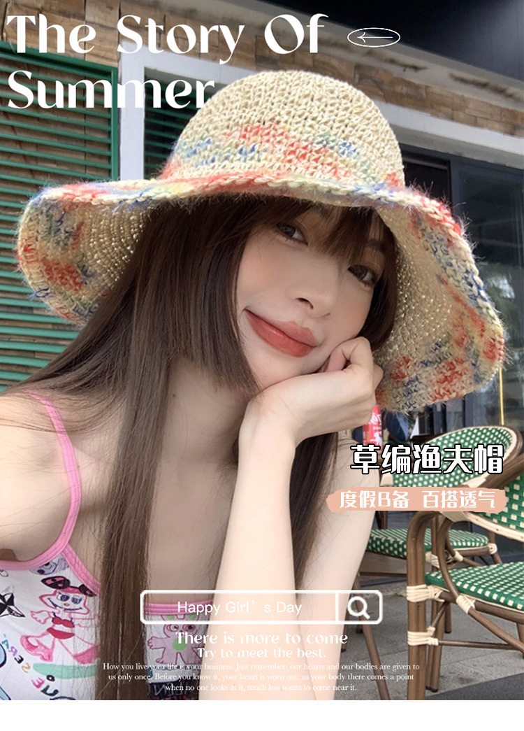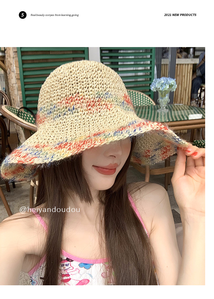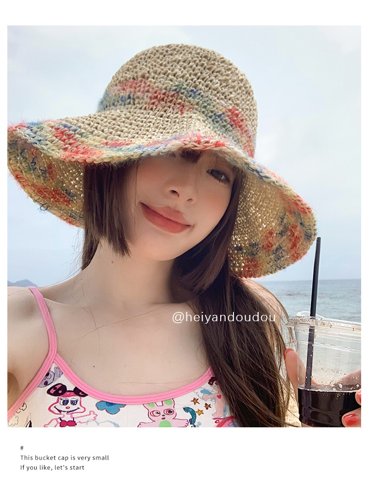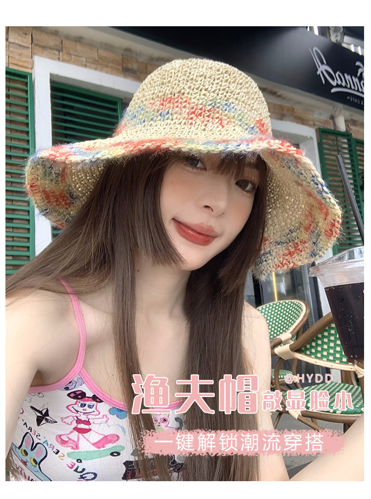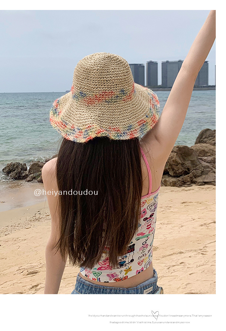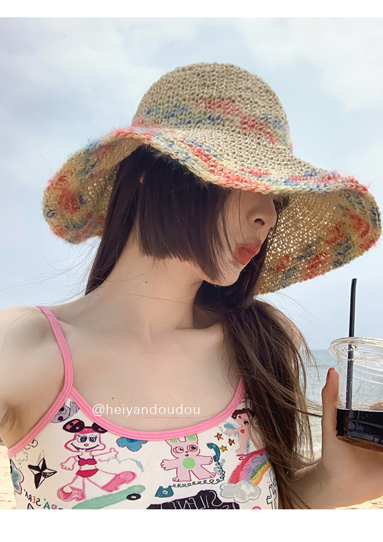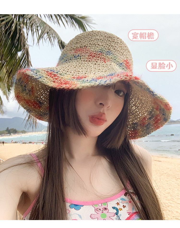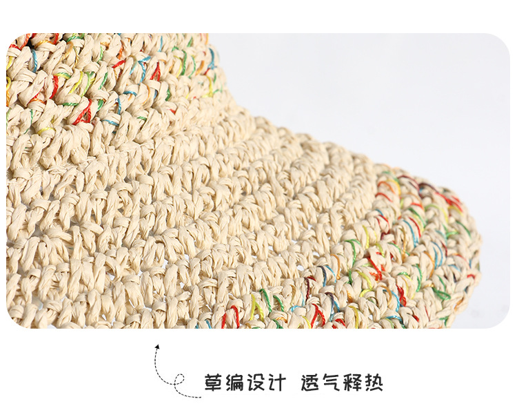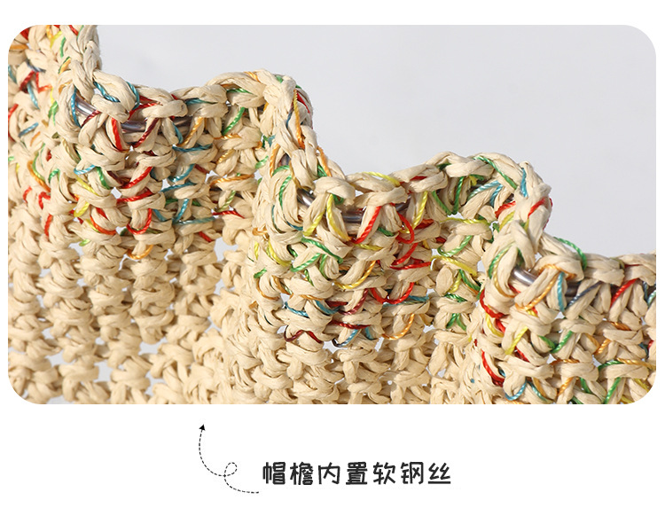 麦わら帽子の女性の夏の海辺の観光休暇の砂浜の通気性が蒸し暑いカラーの草編みの大きなつばの日焼け止めの日よけの帽子