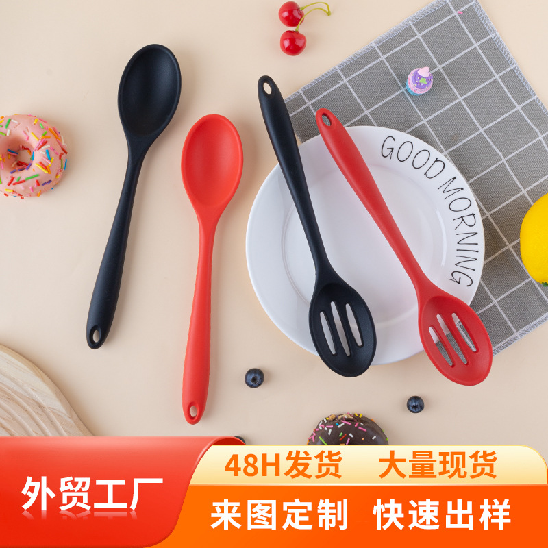 跨境一体式硅胶勺子不粘锅烹饪厨房家用漏勺密更密勺沙拉搅拌勺子