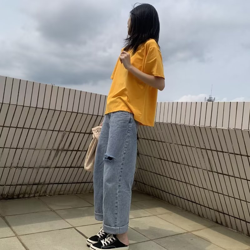 2020年秋の新型純色長袖tシャツ女性韓国版ゆるい百合が痩せている基礎モデルのシンプルな上着女性